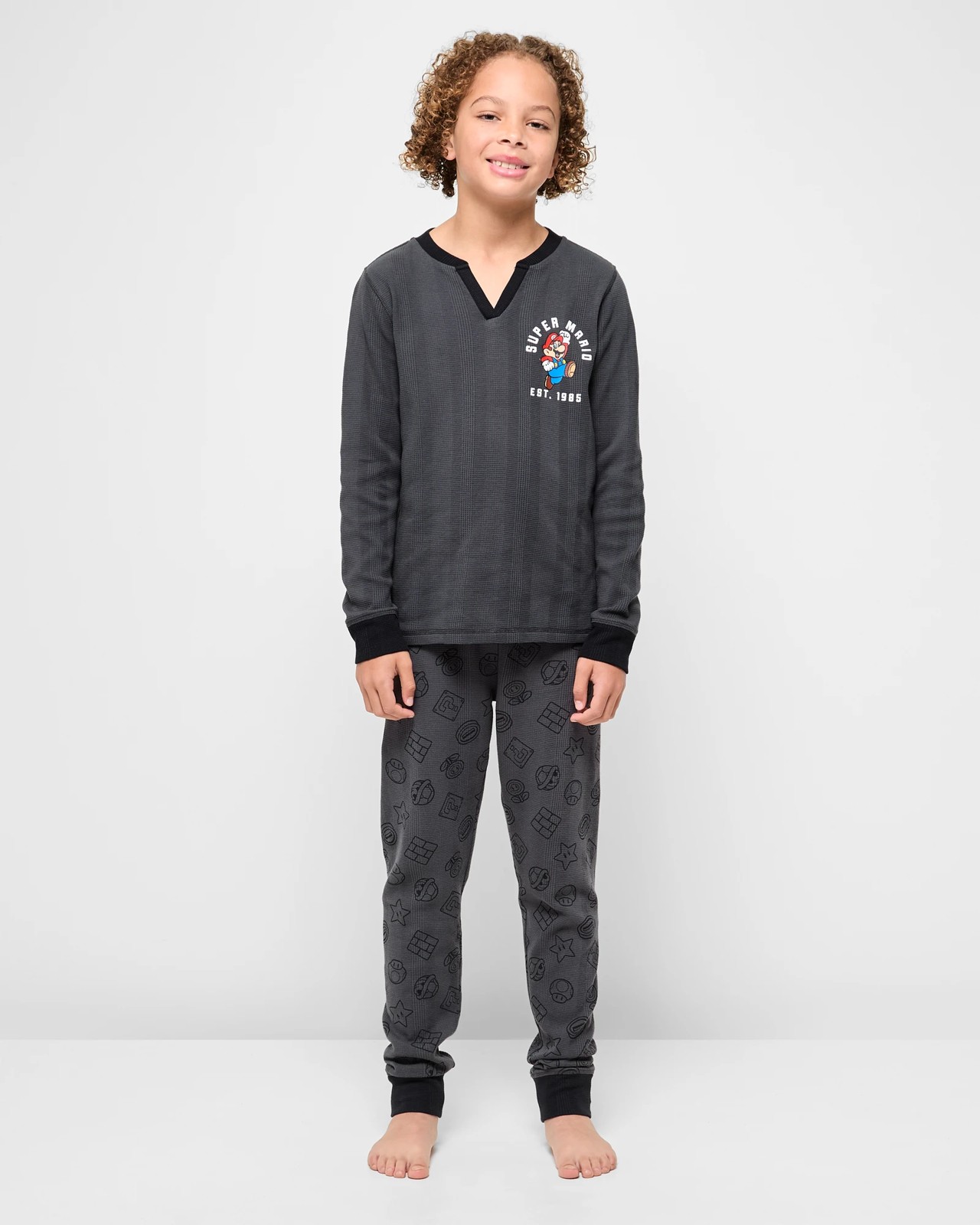 Super Mario Older Boys Waffle Pyjama Set - Charcoal Black