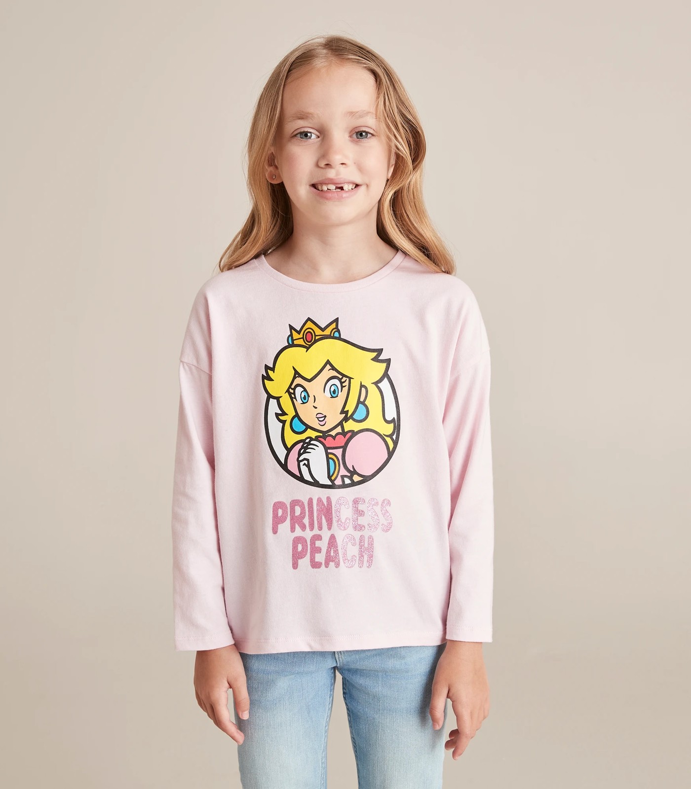 Fans will love the pink Super Mario Princess Peach Top, featuring a ribbed crew neck, large Princess Peach print to chest and is crafted from soft cotton for all day comfort.
