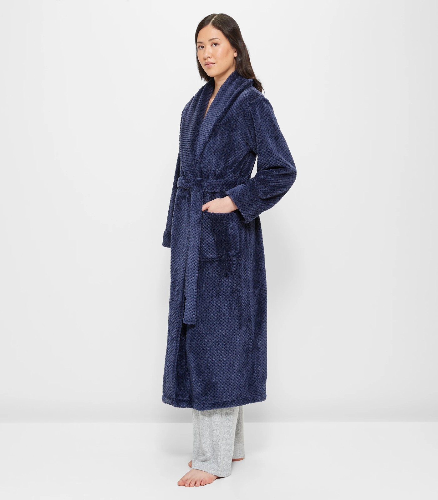 Indulge in ultimate comfort with our Super Soft Sleep Dressing Gown. Crafted from a high-quality polyester fabric, this dressing gown offers a luxurious and super soft feel against your skin. Its regular fit and round neckline ensure a comfortable and relaxed fit. The all-over diamond pattern adds a touch of elegance to the design. With an open front and long sleeves, it provides easy wearability. The large open front pockets are perfect for keeping your essentials close at hand. For added convenience and support, it features a removable tie front belt and an inner tie-up. This long-length dressing gown boasts a straight hemline. Treat yourself to the epitome of relaxation and get your own Super Soft Sleep Dressing Gown today!