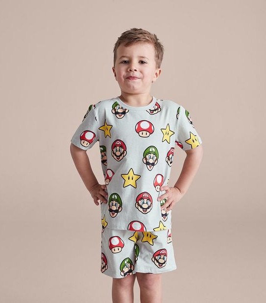 Gaming fans will sleep blissfully in the grey Super Mario Pyjama Set featuring an all over character print and crafted from soft cotton for all night comfort.