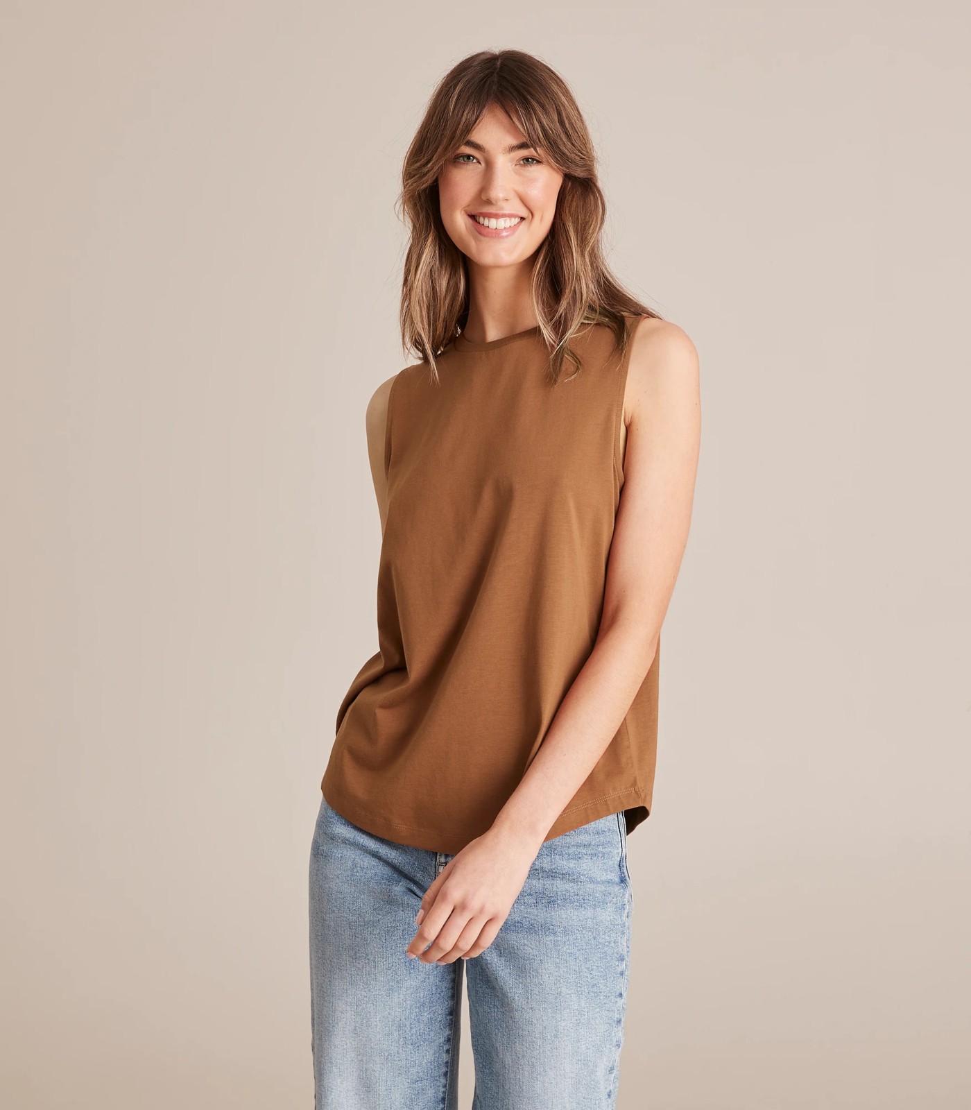 A great lightweight design for everyday wear, the Supima cotton tank top has a crew neckline, sleeveless design and a curved hemline for a flattering shape.