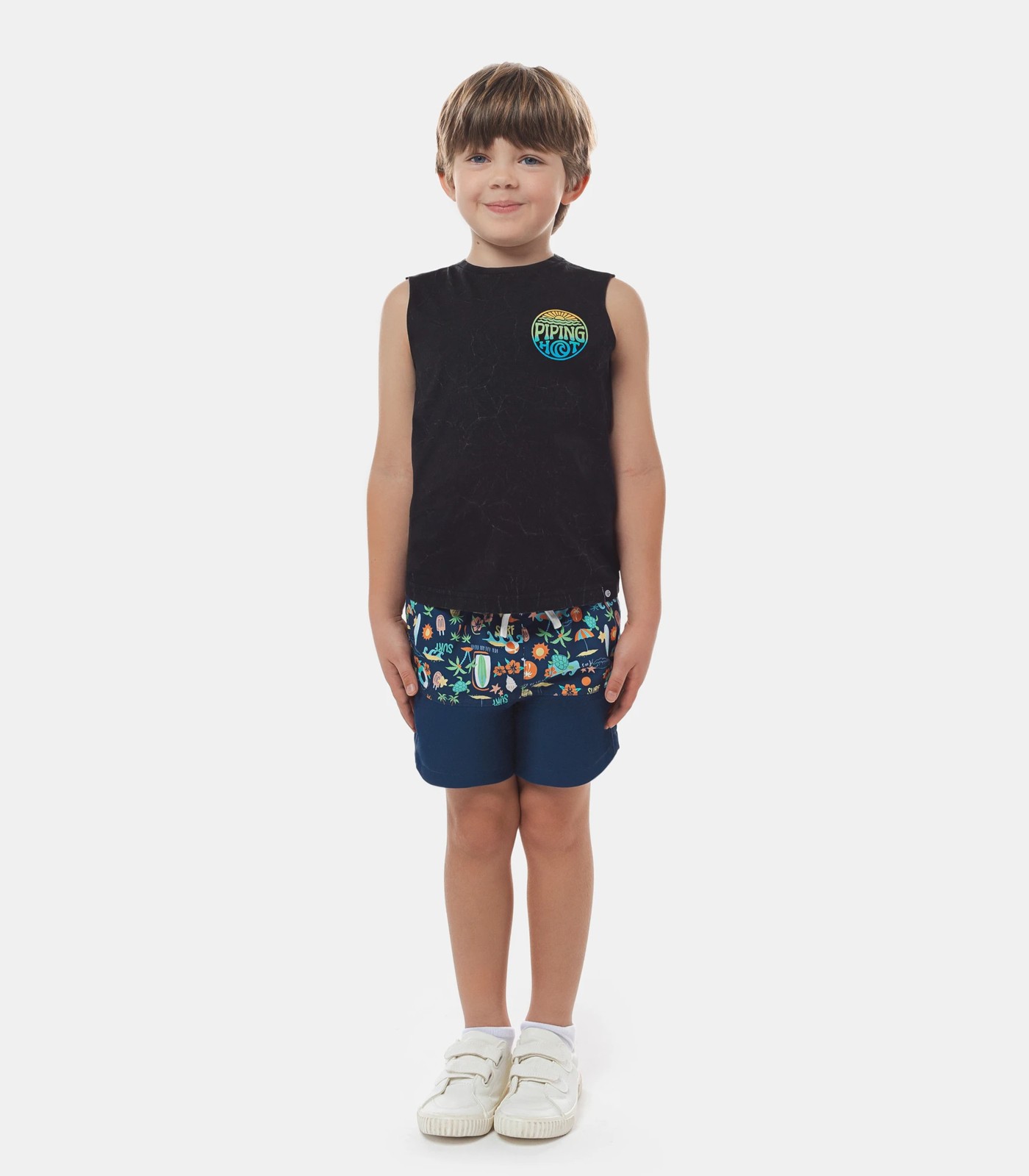 Easy wear boardshorts for the pool and the beach featuring a surf inspired print and navy panelling. Includes mesh inner lining for comfort in the water.