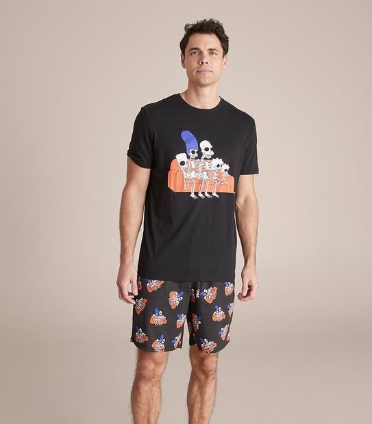 The Swag licensed jersey sleep set is made from soft cotton rich material and features a The Simpsons™ spooky print. The short sleeve tee has a crew neckline and the shorts have an elastic drawstring waist and pockets.