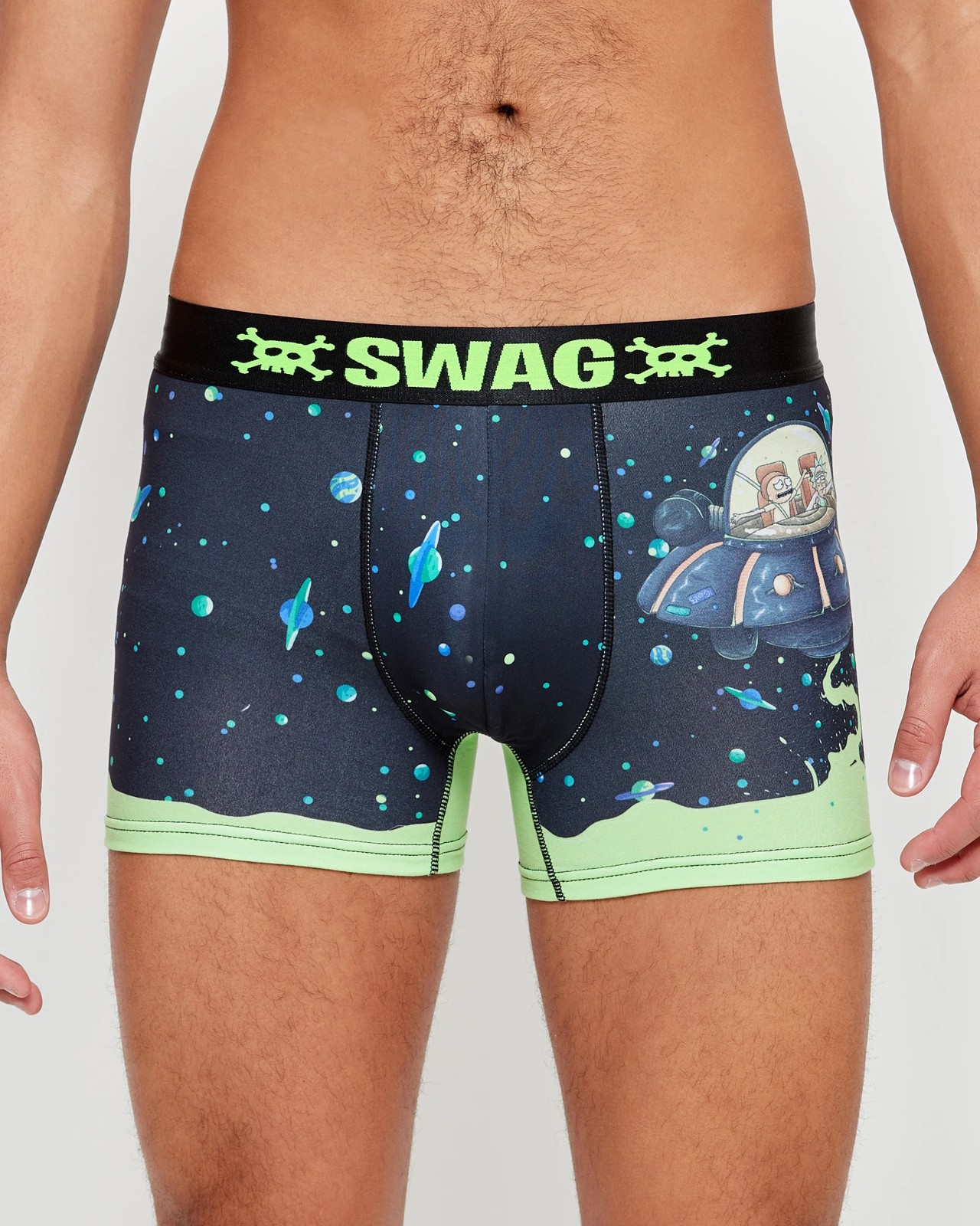 Make a statement with these ultra comfortable and stylish Rick and Morty™ Swag Licensed Trunks! Crafted with ultra soft micropolyester rich fabric, they feature a stretch design for maximum comfort and a regular fit. Featuring an eye-catching UFO print, these trunks also have an ultra premium satin waistband and contoured pouch to keep you feeling your best!