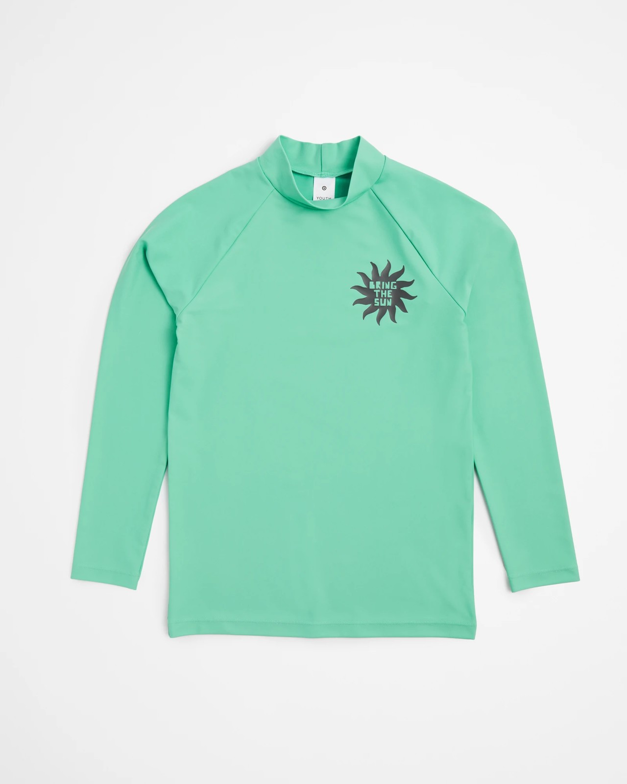 Immerse your little explorer in fun-filled splashing adventures with the Boys Long Sleeve Swim Rash Vest. Designed to provide exceptional sun protection with its specialised UPF-50+ technology, allowing your child to dive into the waves worry-free. Expertly crafted from recycled materials, delivering both durability and sustainability in one. Watch your young swimmer move gracefully through the water with the flexible raglan sleeves while staying comfortable during all-day outings. The lyrical small print on the front adds a touch of charm to their aquatic ensemble. Bring home the Boys Long Sleeve Swim Rash Vest today and let the aquatic fun; begin!
