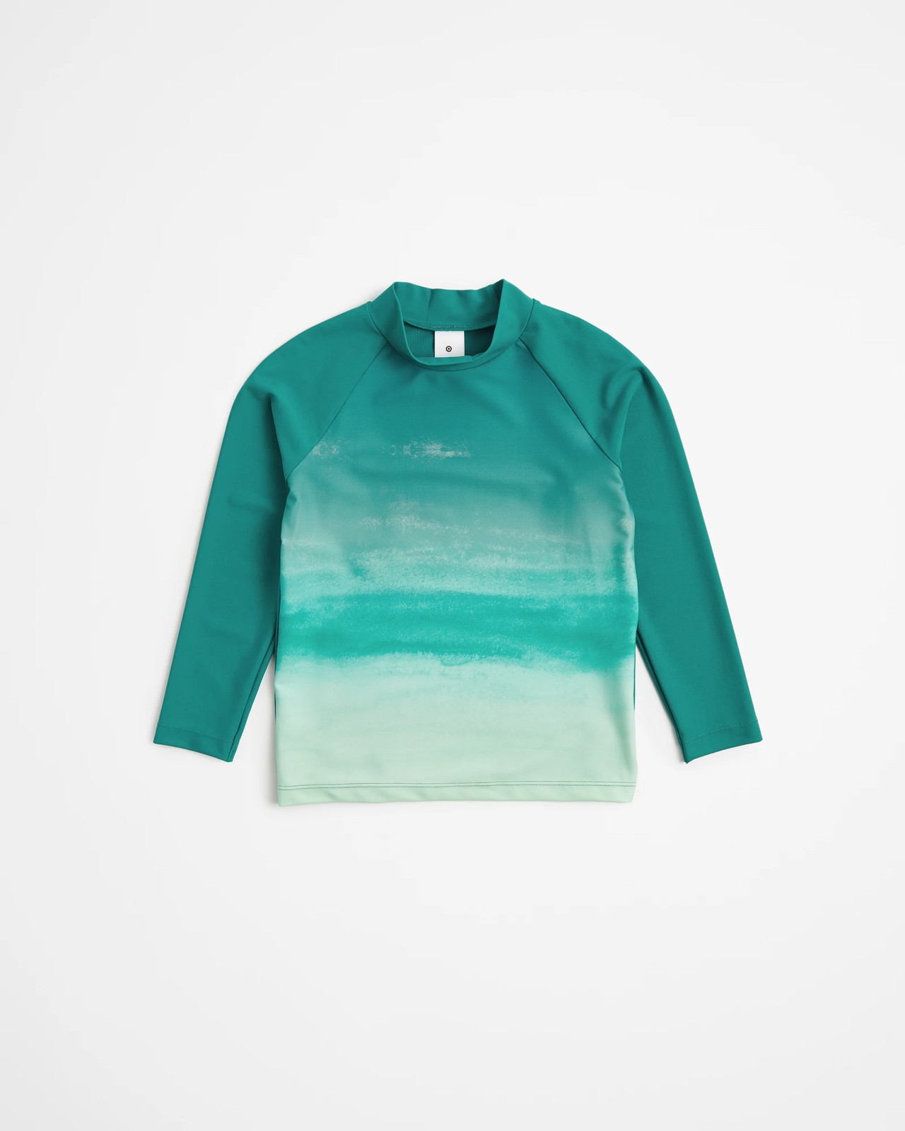 Keep him protected from the sun and make a sustainable choice with our Swim Rash Vest. This stylish rash guard is crafted using recycled materials, reducing environmental impact. With UPF 50+ sun protection, it offers excellent coverage for his skin. The vibrant green ombre print adds personality, making it a standout choice for beach or pool outings. Featuring a stand collar and long raglan sleeves, it ensures a comfortable fit and full range of movement in the water. Designed with a regular fit and a straight hem, this versatile swim rash guard can be paired with any swim bottom. Lightweight and perfect for hot summer days by the water, take a step towards sustainable fashion with our Swim Rash Vest!