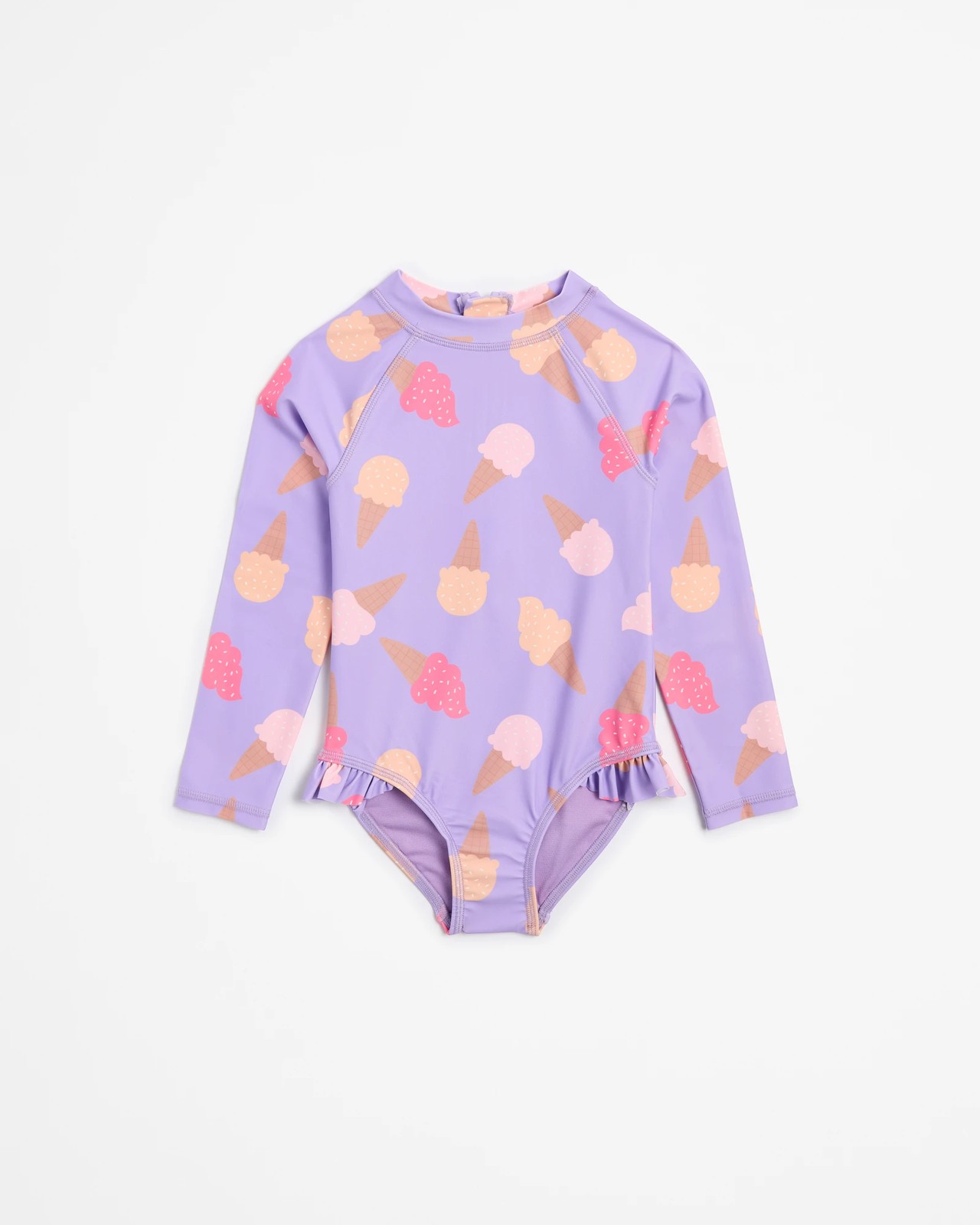 Introducing our Swim One Piece Frill Surfsuit, designed to make every splash a delightful experience. With its charming all-over print and elegant frill detailing, your little one will be the star at the beach or pool. The stand collar and long raglan sleeves ensure complete coverage and freedom to move, while the brief bottom adds a touch playful style. Featuring a convenient zip back and fully lined interior, this surfsuit is as practical as it is cute.