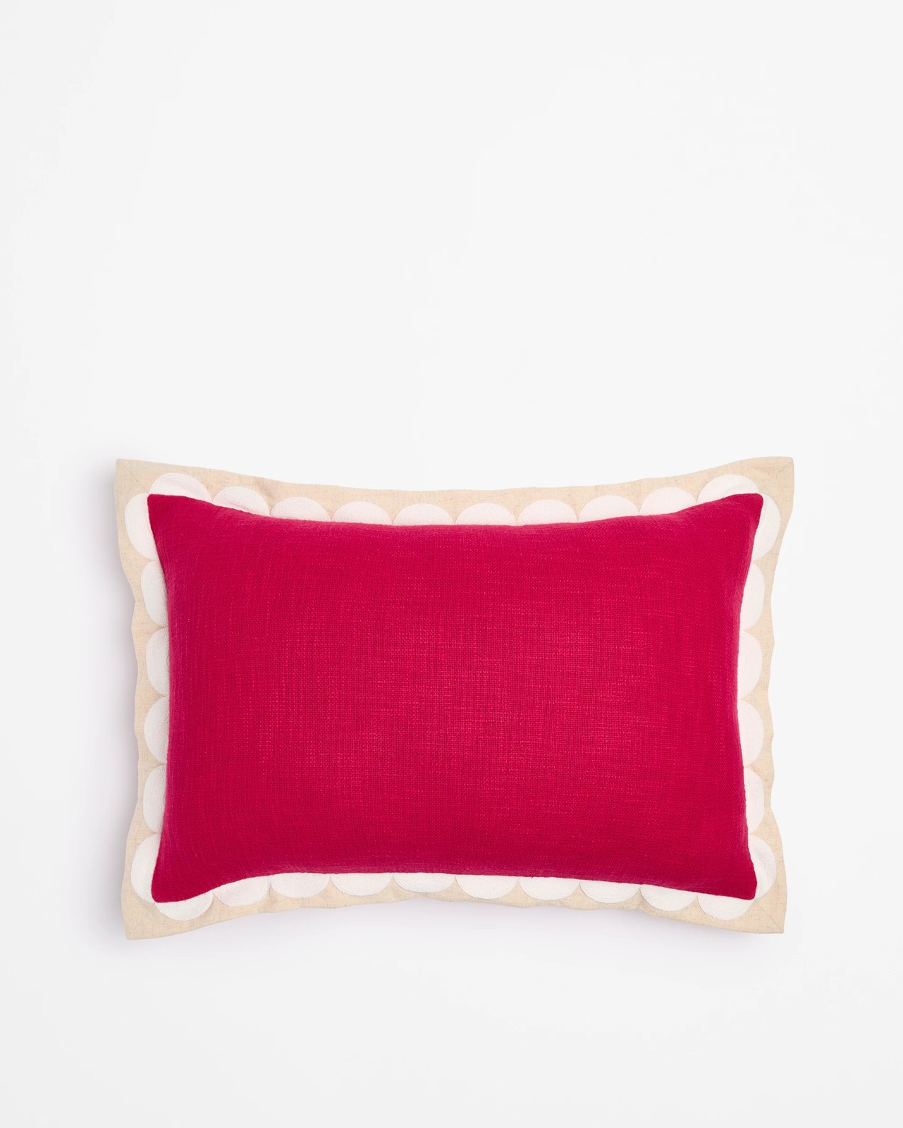 Add a delightful touch to your living space with this scallop embroidered cushion. Made using soft cotton for the main fabric and complemented by a cotton linen blend trim, it delivers both comfort and style for your home. The textured front and charming scalloped embroidery create a unique detail that effortlessly suits a variety of interiors. With its spacious 40cm by 60cm shape, this cushion is perfect for relaxing or accenting your favourite sofa or bed. Thanks to its neat concealed zip, the cushion maintains a smart appearance on any piece of furniture. Treat your home to a fresh, inviting look with this lovely cushion and enjoy cosy moments all year round.