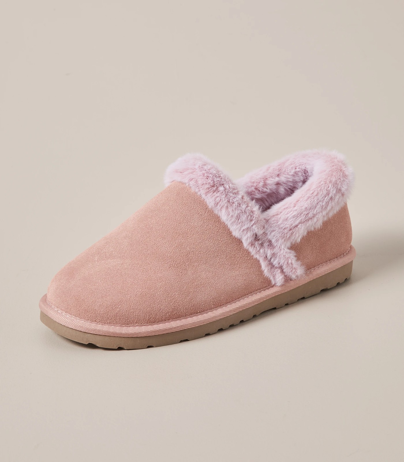 The Sylvie suede moccasins are a super cute comfortable option to slip on with a fluffy slides design! They feature an outer suede design, faux fur lining and around the ankle and a non-grip sole.