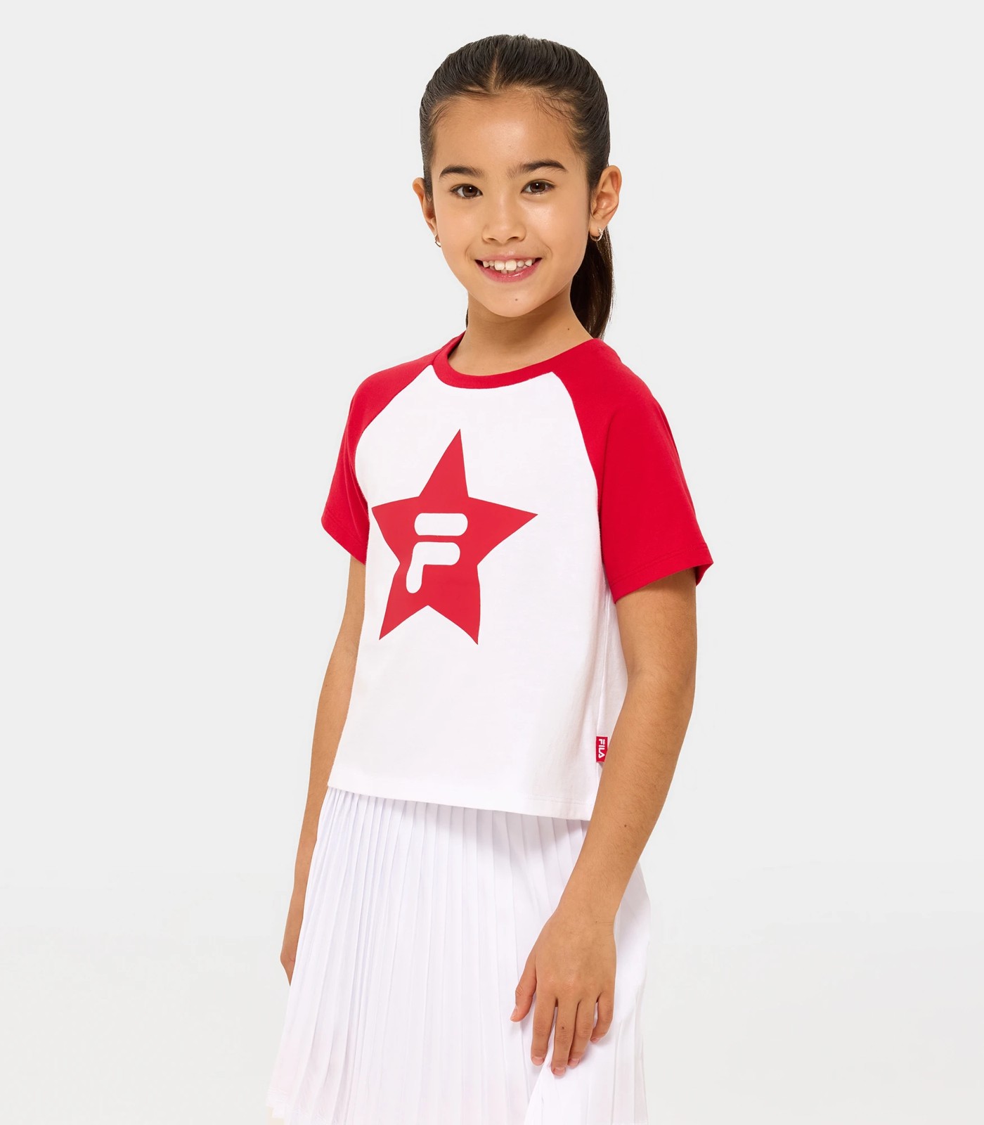 With a crew neck, short sleeves and a relaxed fit, this Camilla tee is a wardrobe essential. Featuring a statement with the Fila star print to the centre front chest and contrast raglan sleeves. Pair with our Camilla skort (sold separately) for a fresh summer fit.