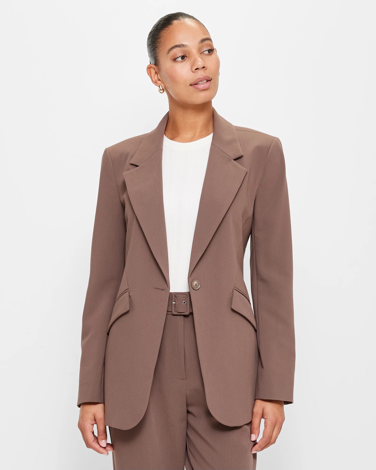 Step into style with the Tailored Blazer by Preview. Crafted from a luxurious blend of polyester and viscose, enjoy ultimate comfort with a touch of stretch. Stay sharp with its tailored fit and unique round collared neckline. Perfect for any occasion, the blazer also contains recycled materials. Elevate your look with long button-cuffed sleeves and fold-over top front pockets.