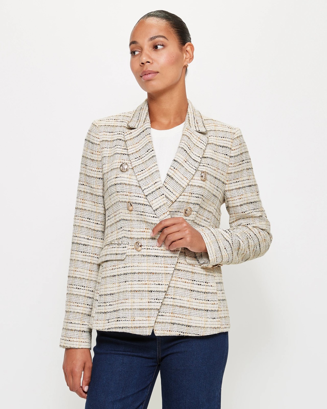 Discover Elegance with the Tailored Tweed Double Breasted Blazer