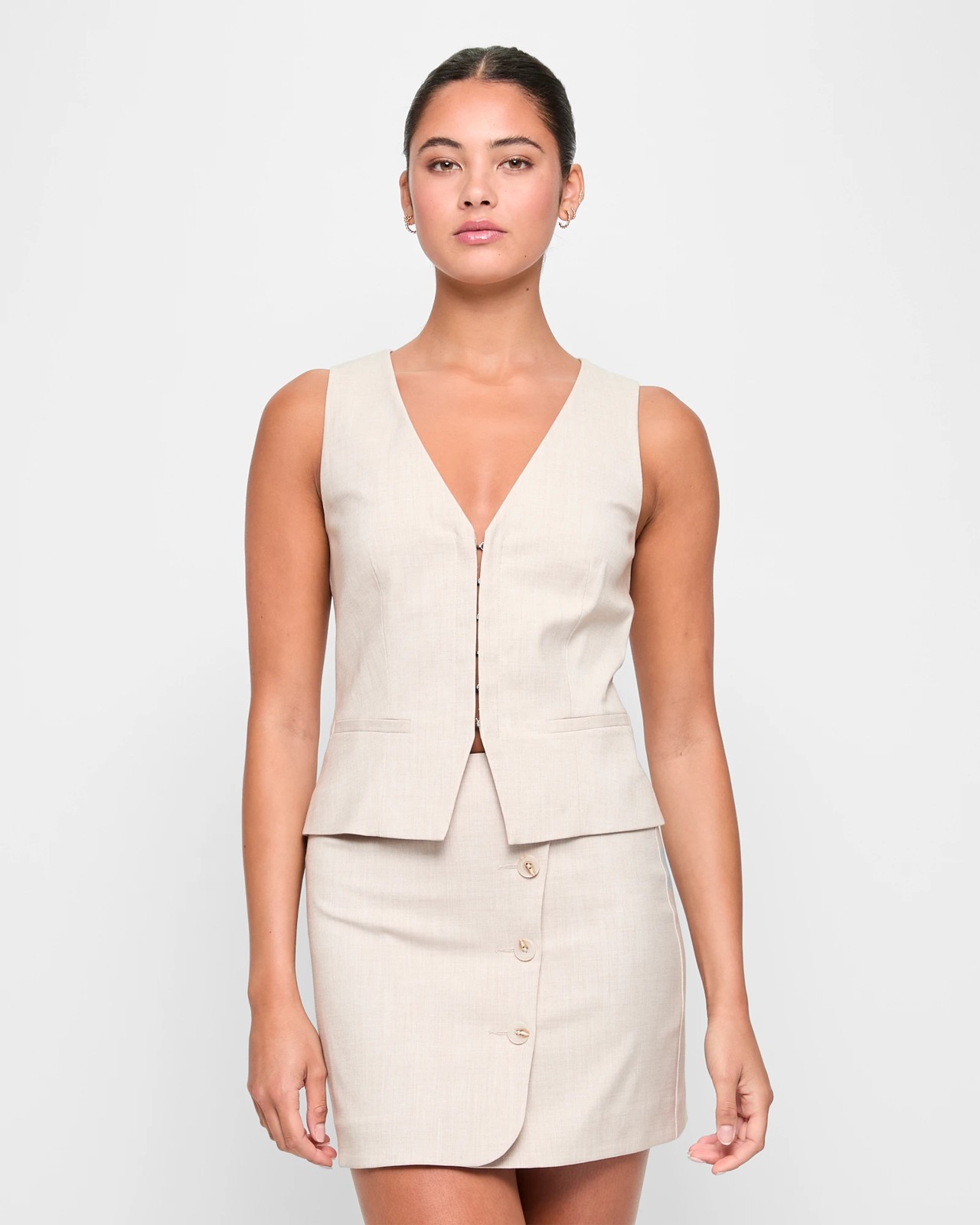 Discover the stylish Lily Loves mini skirt, designed from quality polyester/viscose/elastane for a comfortable fit. It features a convenient inner lining and a tailored cut, with a secure button-down side. The skirt has a structured waistband and a straight hemline, offering a modern twist. Perfect for any occasion, this mini skirt will quickly become a favourite in your wardrobe.