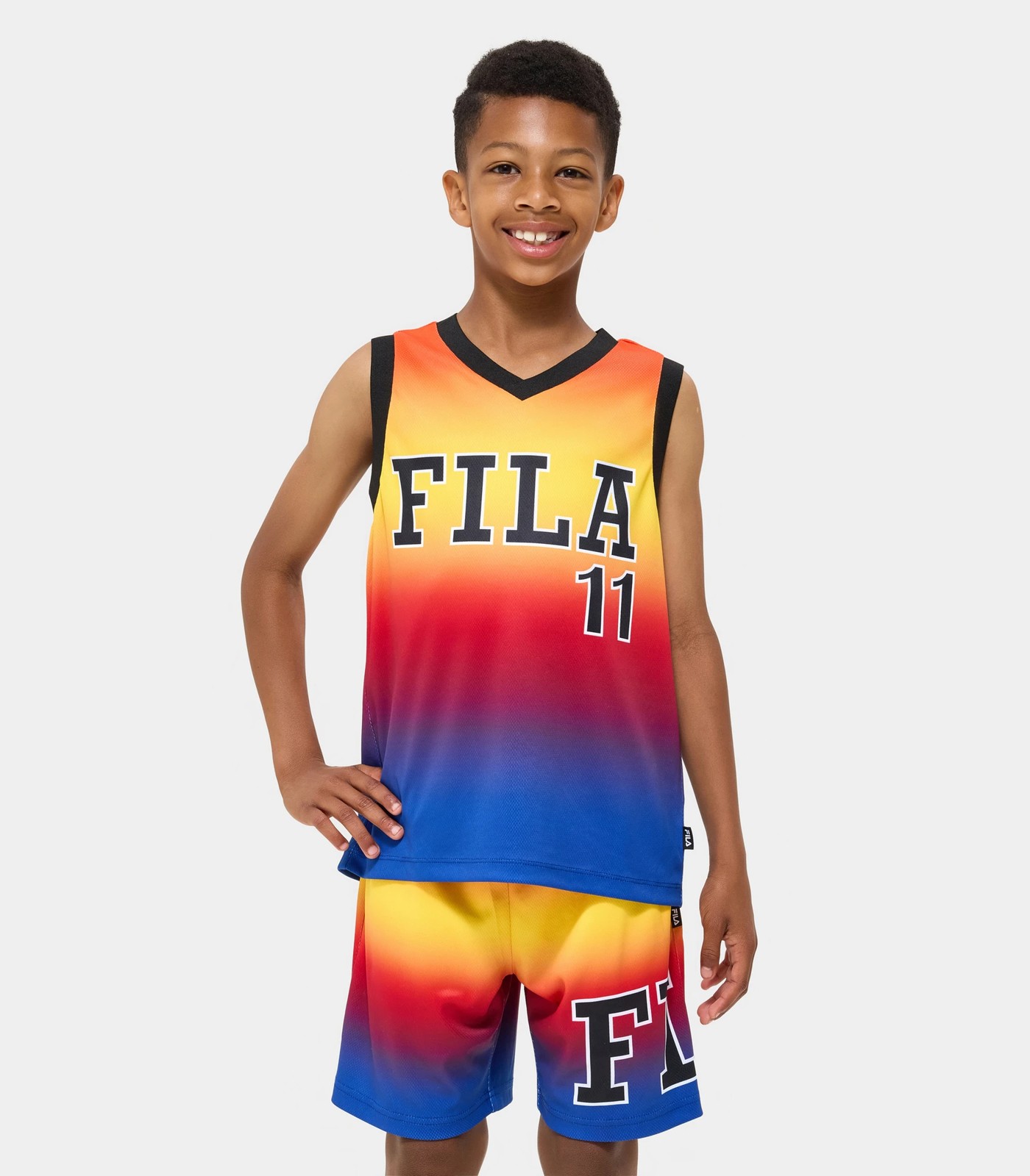 Head out onto the basketball courts in your new Joseph tank. Perfect for a summer day or if you are playing sports. The Joseph tank features a Fila print on the chest and an all-over ombre, you can pair this with the Joseph short (sold separately) to complete your sporty look.