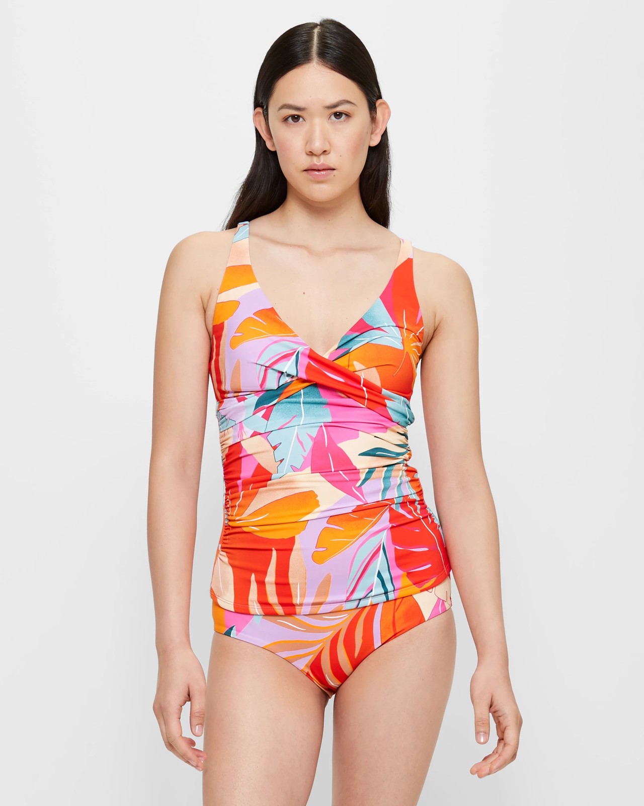 Experience the ultimate in body shaping and comfort with our tankini top. Crafted from a soft nylon fabrication and designed with recycled materials, this top is perfect for your next beach day or pool party. The power net lining is designed to slim and shape your body, while the twist front and removable padded cups provide extra coverage and support. Get ready to look and feel your best with our stylish tankini top!