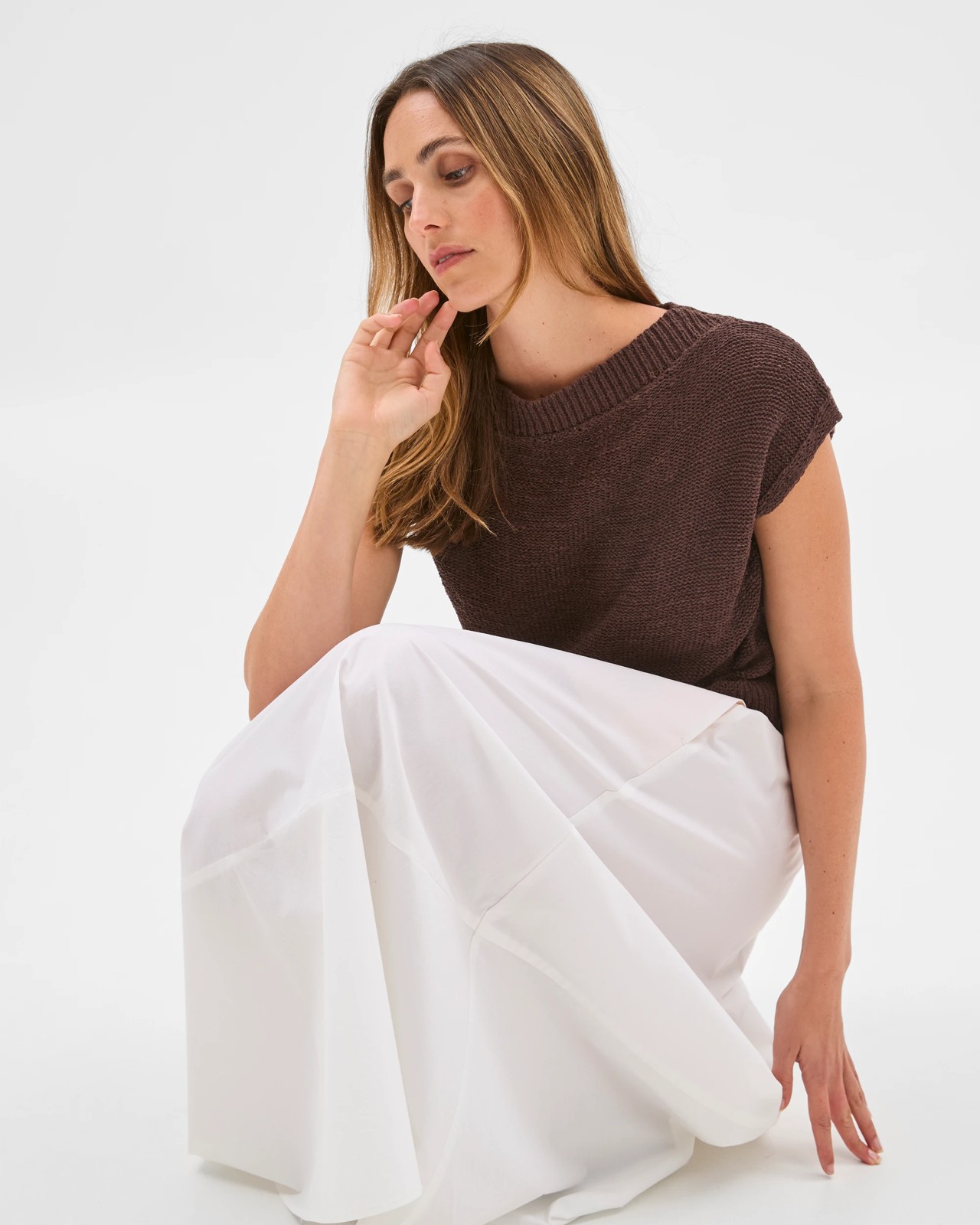 Slip into the Tape Yarn Knitted Top and discover the blend of comfort and modern flair that makes it a standout in your collection. Featuring a soft combination of acrylic and recycled nylon, this top feels gentle and light every time you wear it. The regular fit and ribbed asymmetric neckline bring a playful yet sophisticated edge to your look, while the sleeveless cut is perfect for sunny afternoons or easy layering. Whether you're meeting friends for coffee or planning a laid-back weekend, this knit top adapts to your plans with style and ease. Indulge in its all-over knit texture and enjoy a look that truly feels like you. Make it yours today and step confidently into any occasion.