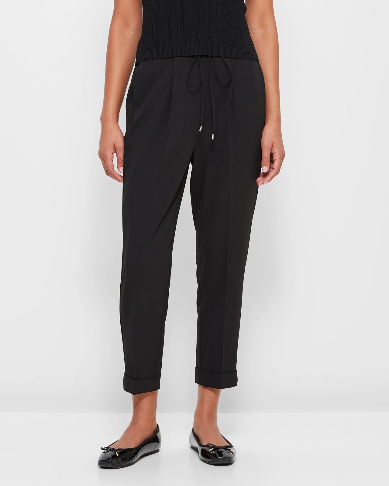 Front flat waistband with front drawstring