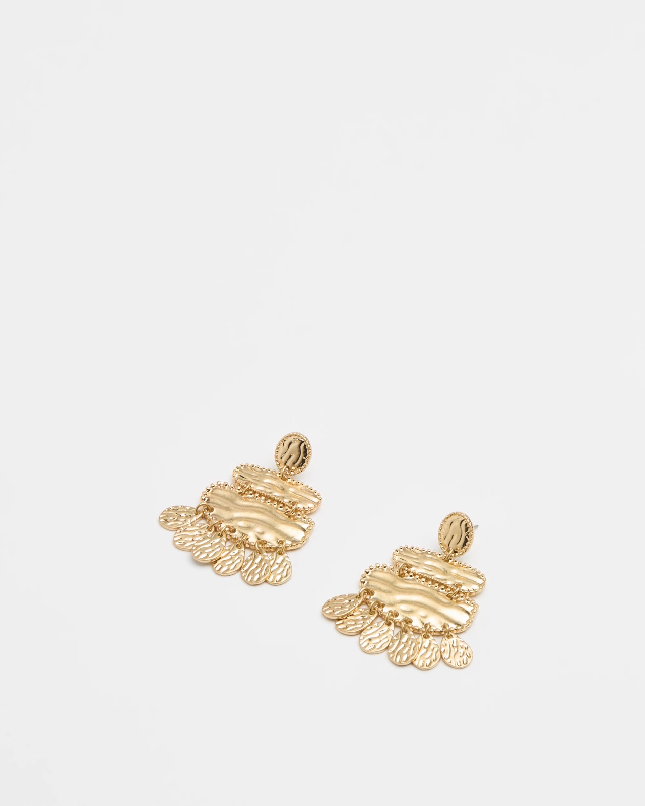 Step confidently into any occasion with these Tear Drop Statement Earrings, designed to add a vibrant touch to your ensemble. Each pair showcases an elegant drop structure finished with subtle brushed tones and intricate textures for a striking effect. Delicate teardrop charms sway gracefully beneath small, rounded discs, capturing attention with every movement. Whether you're dressing up for a special evening or elevating your daily style, these earrings promise to be the perfect accessory. Treat yourself to a contemporary piece that will have you feeling stylish and unique—why not make these stunning earrings your next favourite find?