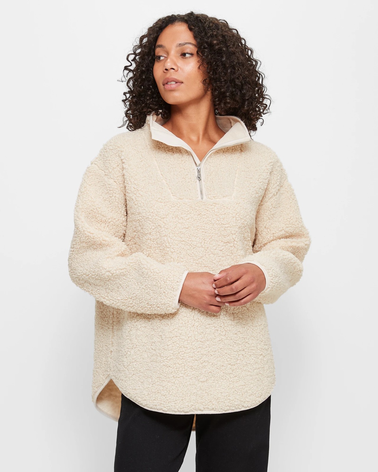 Step into warmth and style with our Teddy Quarter Zip Jumper. Indulge in the feel of the teddy fabric, a perfect blend of comfort and fashion. The jumper boasts a trendy quarter-zip design that adds a modern touch to your outfit. Ideal for any occasion, you can stay cosy and chic wherever you are. Elevate your wardrobe with our Teddy Quarter Zip Jumper and experience the perfect combination of style and comfort.