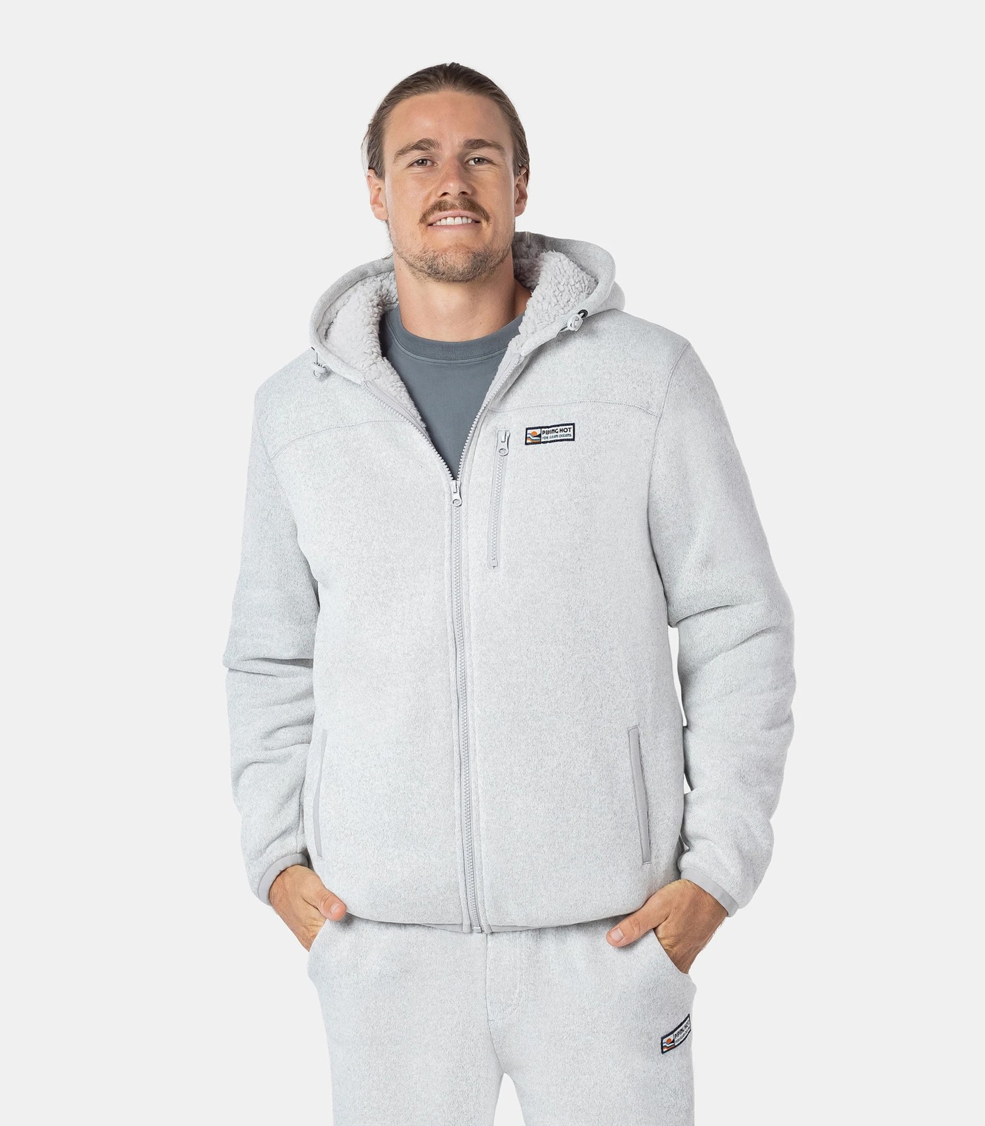 Designed for warmth and comfort, this hooded zip through Piping Hot Sherpa Hoodie is a winter essential. Both the hood and body of the jacket are lined with soft sherpa to keep out the chill. Made with recycled materials including PET bottles as part of Piping Hot's commitment to ocean protection. Wear with the matching jogger pants (sold separately).