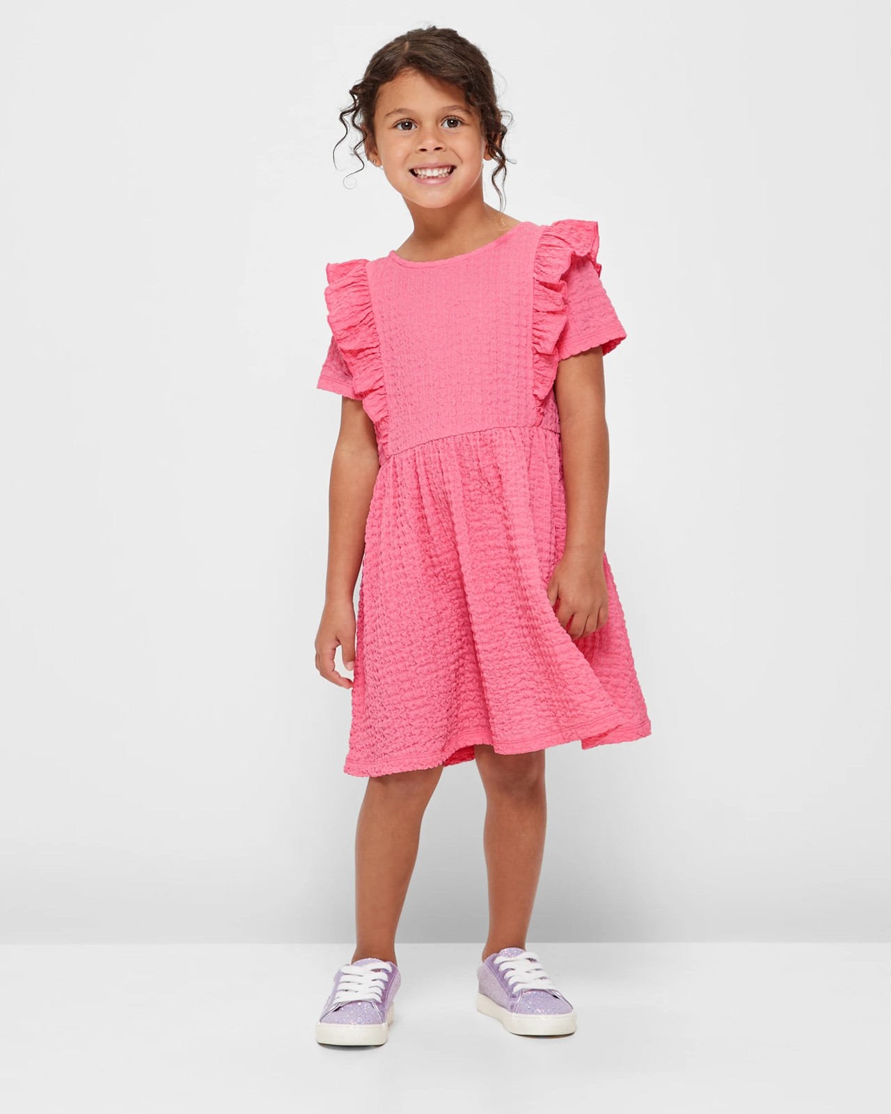 Discover the charm of our Textured Jersey Dress, designed with care and consideration for both your little one and the environment. Featuring delicate frill shoulder detailing and gathered elastic waistband, she'll feel comfortable and stylish all day long. The regular fit and A-line silhouette offer a flattering look, while the keyhole button closure at the back adds a touch of elegance. Crafted using recycled materials, our dress not only promotes sustainability but also ensures high quality and durability. Treat her to a dress that embodies both fashion and consciousness today!