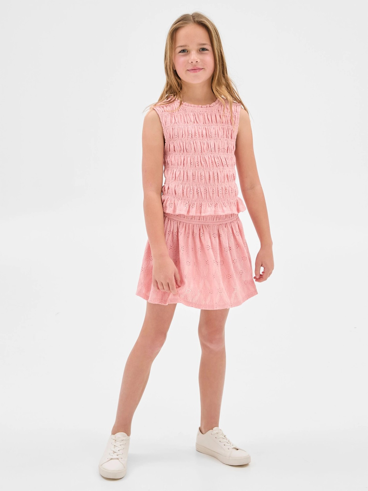 Embrace playful style with our Textured Knit Skort, designed specifically for young girls who love to express themselves through fashion. Perfect for both outdoor adventures and everyday activities, this skort combines the comfort of shorts with the flattering look of a skirt. Crafted from a blend of polyester and elastane, this garment offers just the right amount of stretch for an easy fit. The use of recycled polyester not only prioritizes sustainability but also contributes to a lightweight feel, making it an excellent choice for warm weather. With a fabric weight of 180gsm, it is durable yet breathable. The stylish smocked elastic waistband ensures a secure and comfortable fit, while the mini length adds a youthful charm. Versatile enough to pair with a variety of tops, this skort is a must-have for any girls' wardrobe. Encourage your child to step out in style and confidence—add this delightful skort to her collection today!