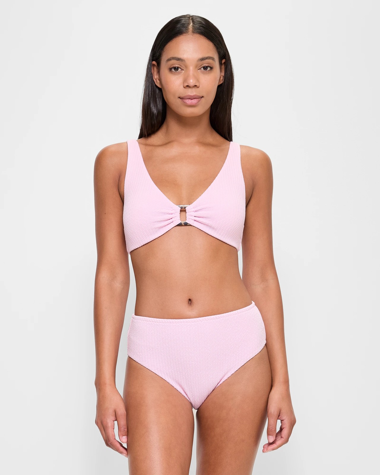 Step into style with our Textured Midi Bikini Swim Bottoms. Tailored from a luxurious nylon-rich fabric mixed with stretch elastane, these bottoms promise both comfort and durability. The unique zig-zag pattern offers a touch of playful elegance, while the high-cut leg design enhances your beach look. Fully lined for quality and providing full back coverage, they sit perfectly at your waist for all-day wear. Match them with the coordinating swim top for a stunning holiday ensemble. Enjoy every moment by the water in these chic bikini bottoms!