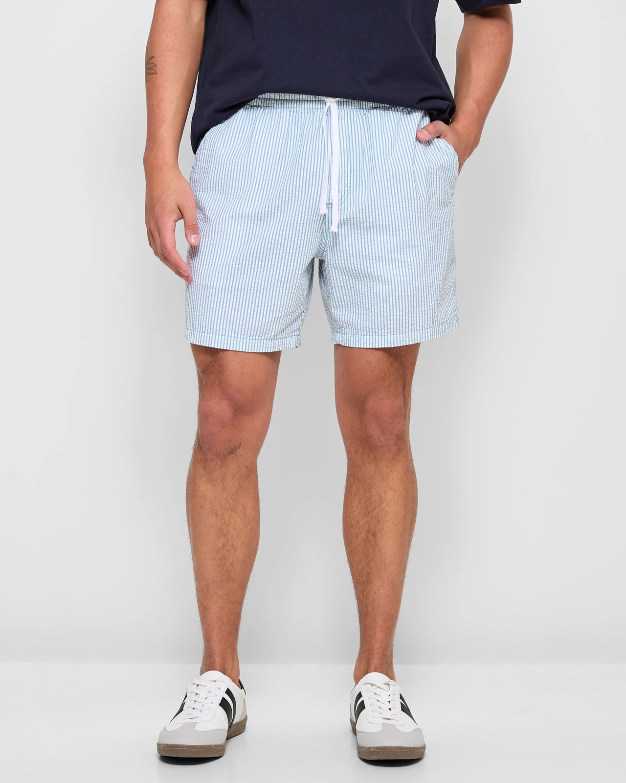 These Commons shorts are not just any ordinary summer wear; they are a celebration of comfort and style intertwined into one. Imagine the softness of cotton embracing your skin, enhanced with a unique textured material that stands out in a crowd. The all-over stripe print adds a dash of playfulness, while the elastic waistband with drawstring ensures a perfect fit every time. From strolling through the city to relaxing at a weekend getaway, these shorts, with their convenient side pockets and a singular open back pocket, are your trusty companion for every adventure. Don't miss out on adding these statement shorts to your wardrobe.