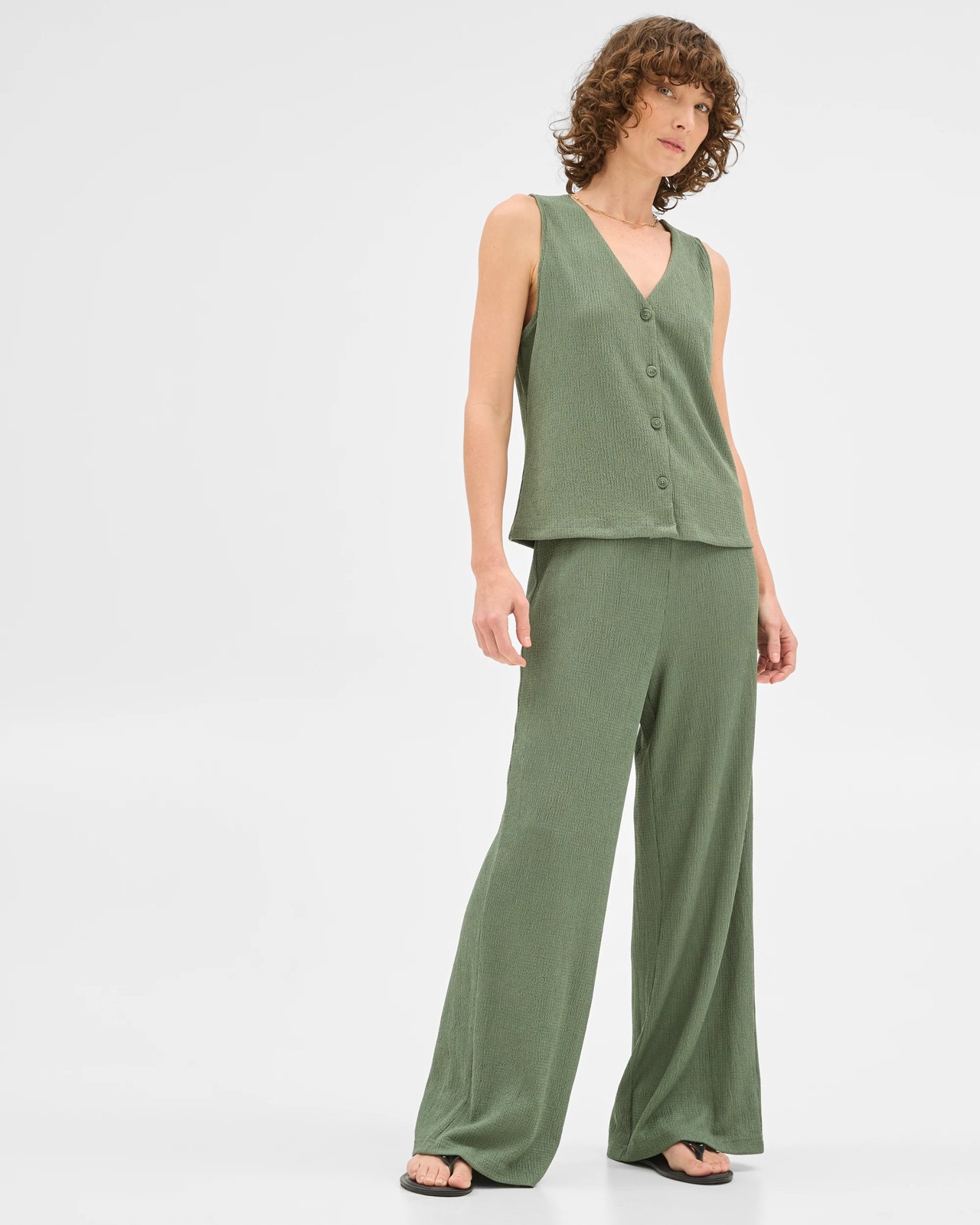 Step into confidence and ease with these Textured Wide Leg Pull On Pants. Designed with comfort in mind, they offer a soft stretch that moves with you all day. The beautifully textured fabric and wide leg shape add a trendy touch, while the hidden flat elastic waistband ensures fuss-free wear. Perfect for any occasion, whether you’re heading to work or enjoying a weekend stroll, these ankle-length trousers let you look and feel your best. Treat yourself to style that brings comfort and a touch of fun to your wardrobe.