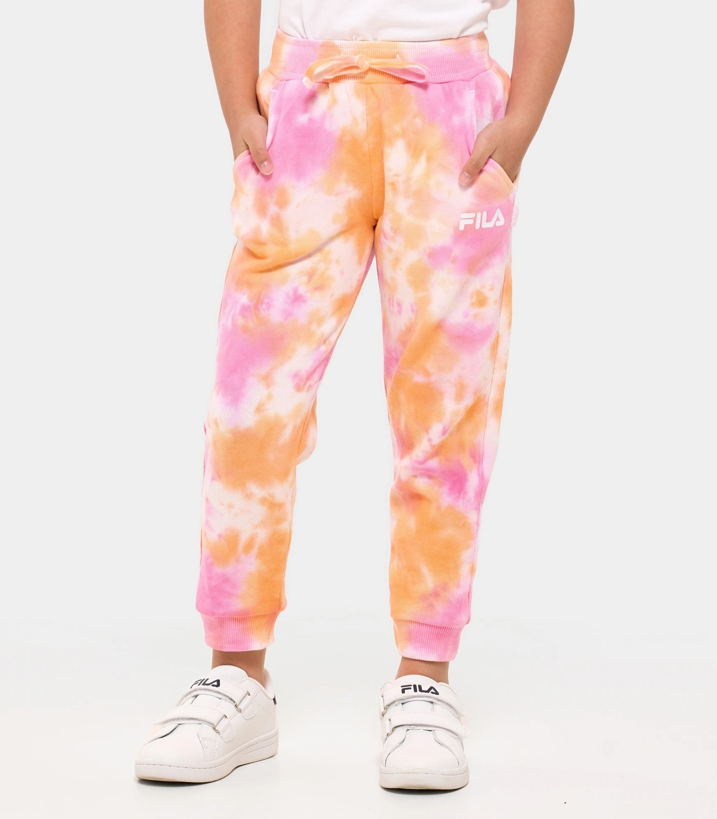 Step up your little one's style game with our Gia trackpants. Crafted from luxurious Cotton Polyester French Terry, these trackpants feature a vibrant true tie-dye and are designed with a ribbed waistband and cuffs for a comfortable fit. Complete with pockets, an external drawcord and a Fila print to the left hip. Whether she's lounging at home or out and about, these trackpants will keep her looking cool and feeling cosy. Get her a pair today and see her confidence soar!