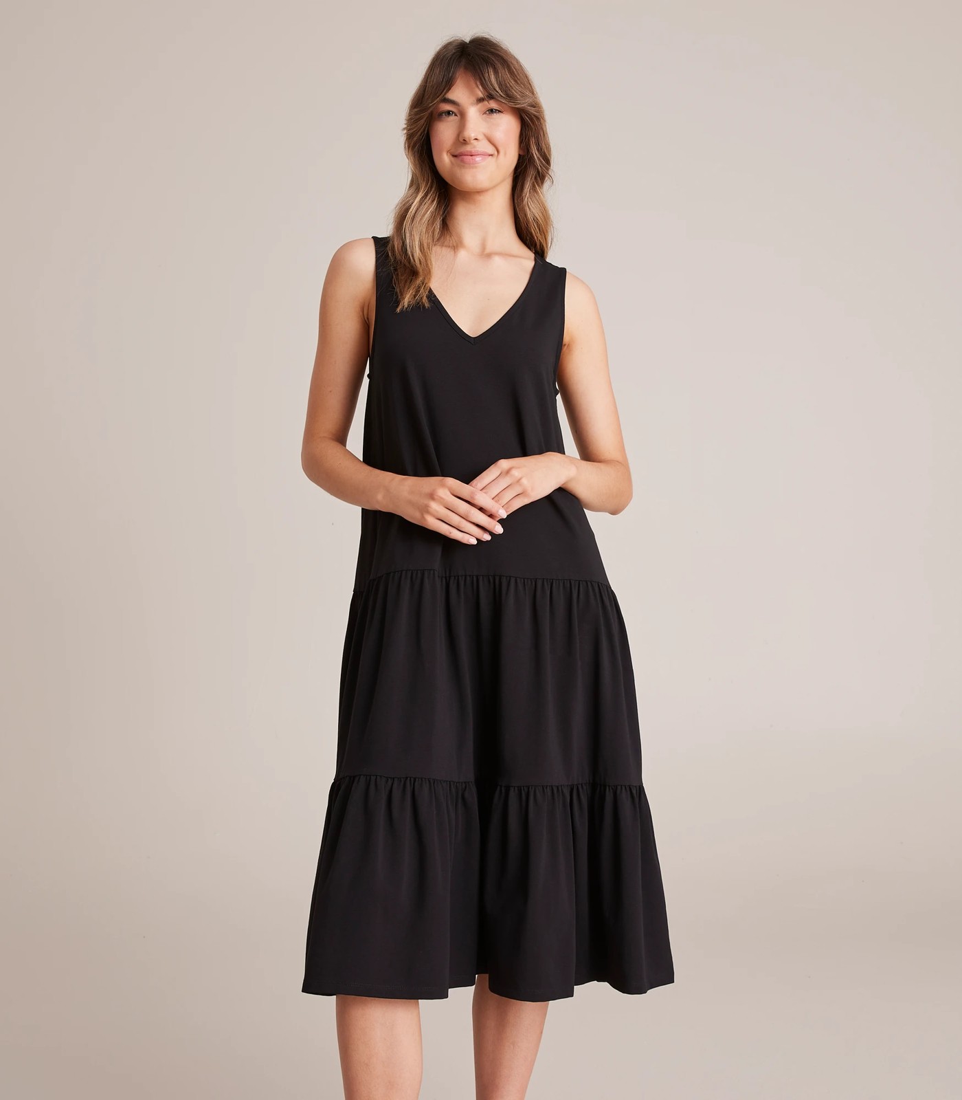 A great everyday design for a day out, the tiered jersey midi dress features round neckline, a sleeveless design, a tiered bottom and a midi length.