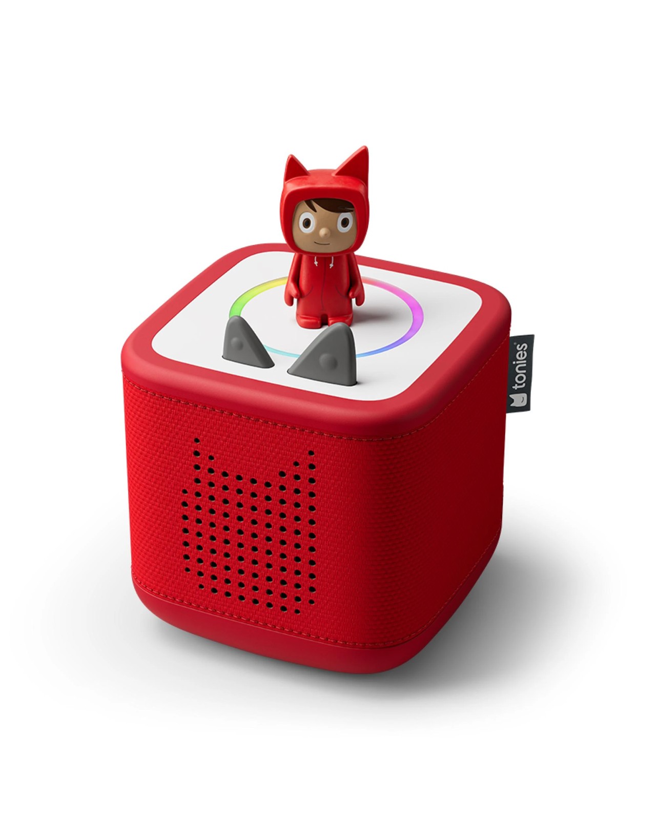 Listen, grow and play in a whole new way with Toniebox 2 and the Creative Tonie Rubie. This Starter Set includes the Creative Tonie Rubie with space for up to 90 minutes of custom audio, and a Sunset Red Toniebox 2.