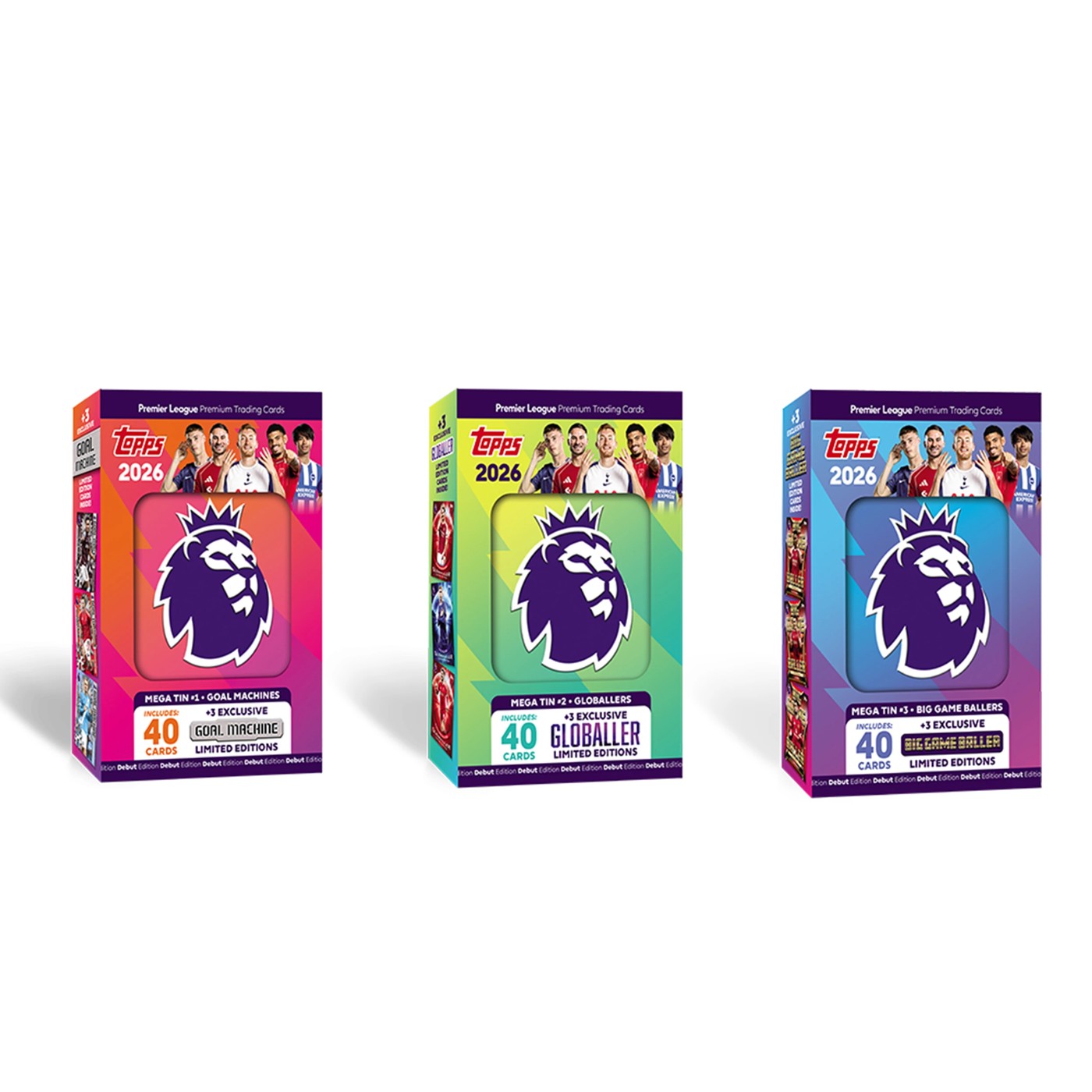 The innovative Topps Premier League 2026 trading card collection brings fans closer than ever before to the heroes of the Premier League. Featuring an insane number of Autograph cards, rare sequentially numbered parallels, an incredible Rookie class with ultra-rare Diamond Rookie cards, special Chrome King Legends, mega-rare Premier Pull Limited Edition cards and the amazing Gold Lion cards, this collection is jam-packed with hits at every turn.