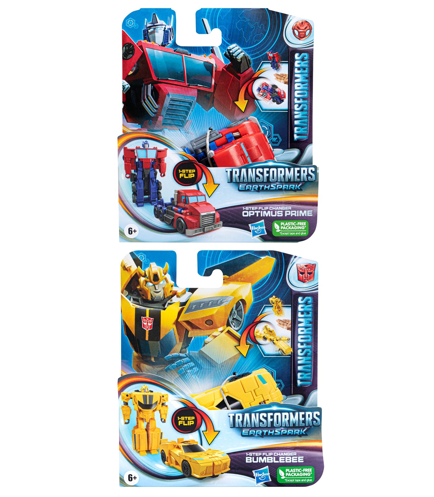 1-Step Flip Changer action figures feature popular characters as seen in Transformers: EarthSpark animated TV series (each sold separately, subject to availability).