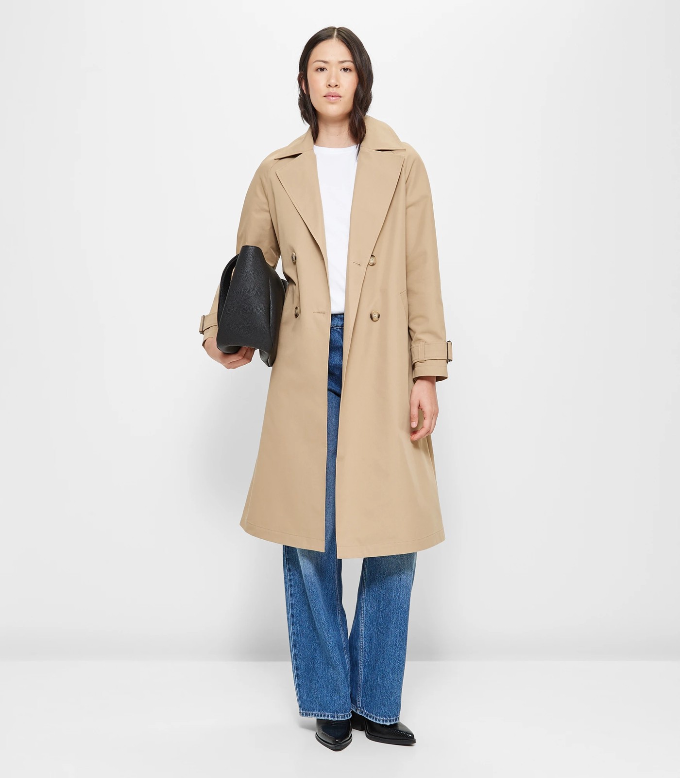 Step out in style with our elegant Trench Coat, tailored to give you a chic and timeless look. The cotton/polyester blend and the inner lining ensure both comfort. The classic design features a stylish round collared neckline and a double-breasted front closure for a sophisticated touch. With practical elements such as front pockets and a removable tie waist belt, you'll strike the perfect balance between fashion and functionality. Make a statement with our mid-length trench coat and elevate your wardrobe effortlessly.
