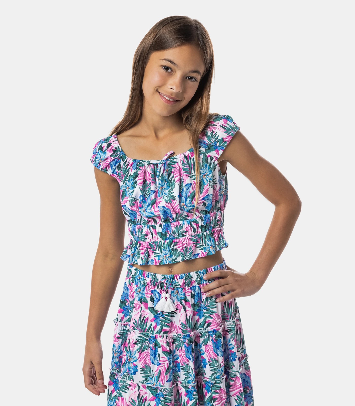 We love this pretty pink Piping Hot blouse top in soft viscose for easy wear. With cap sleeves, a sweet bow detail and flattering elasticated waist detail for comfort and relaxed styling all day and everyday.
