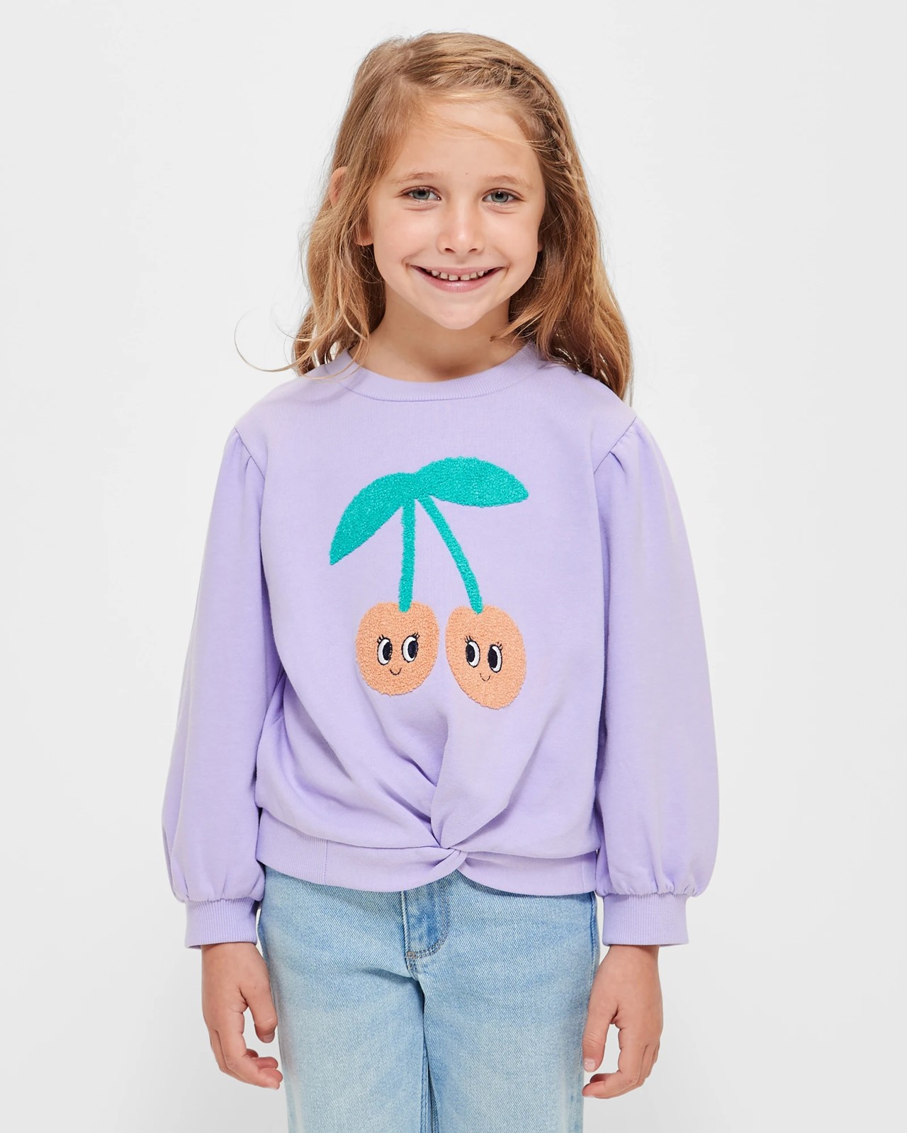 Add a twist of style to your little one's wardrobe with this cute Twist Front Boucle Jumper. Made from soft and comfortable cotton fabric, this regular fit jumper features a delightful boucle cherry print on the front. The ribbed crew neck and cuffs provide a cosy fit, while the gathered shoulders add a touch of charm. The highlight of this jumper is the ribbed hem with a unique twist front design, giving it a fashionable edge. Perfect for casual outings or playdates, this jumper is a must-have for every stylish girl. Shop now and let your little one make a fashion statement!