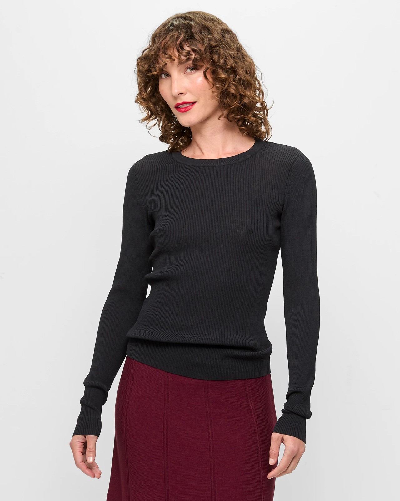Experience unmatched comfort and style with the Ultimate Crew Knit Top. This garment is made from a viscose/nylon blend, which ensures a lightweight and breathable feel. The top features an all-over ribbed knit pattern that provides a slim fit, along with a crew neckline and long sleeves for added sophistication. Ideal for any setting, from casual outings to professional environments. Make this versatile piece a staple in your wardrobe today!