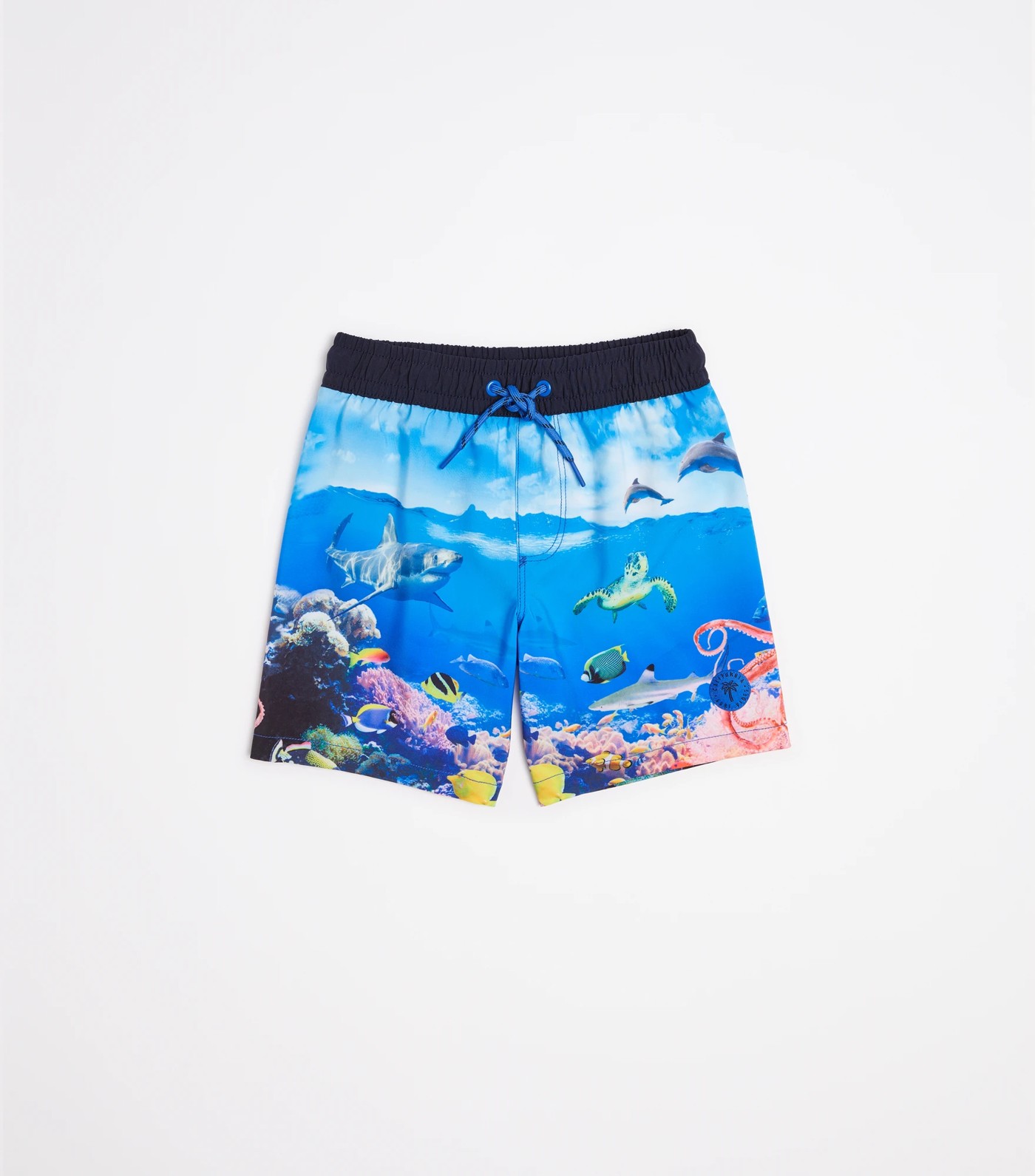 Make a splash in these Underwater Print Swim Boardshorts. Crafted from recycled materials and featuring quick-drying polyester, 4-way stretch fabric, and an elastic waistband with drawcord, these boardshorts are perfect for all kinds of aquatic adventures. Boasting a regular fit and an eye-catching blue underwater print, they come complete with a single back pocket with drainage hole for added convenience. These stylish swim shorts make a great addition to any boys' summer wardrobe.
