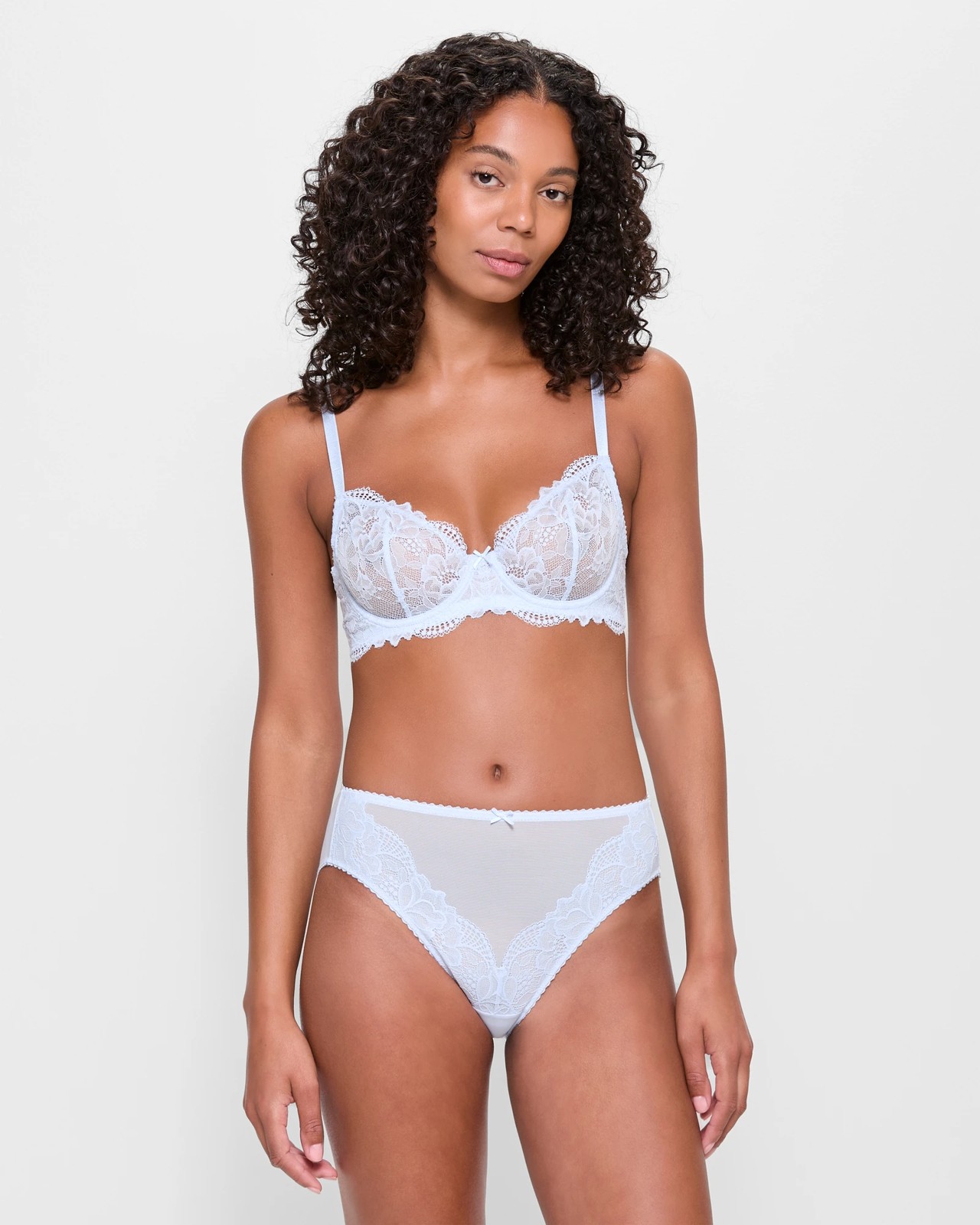 Experience the perfect blend of style and comfort with our Underwire Lace Balconette Bra. Made from a high-quality nylon-rich fabric with a touch of stretch elastane, it ensures a snug and comfortable fit all day long. The delicate lace design and scalloped edging add a touch of sophistication, while the balconette cut provides full coverage and support. With thin adjustable shoulder straps and a charming decorative bow at the centre, this bra is both stylish and functional. Complete the look by pairing it with the matching briefs sold separately. Upgrade your lingerie collection today and enjoy the impeccable mix of luxury and practicality.