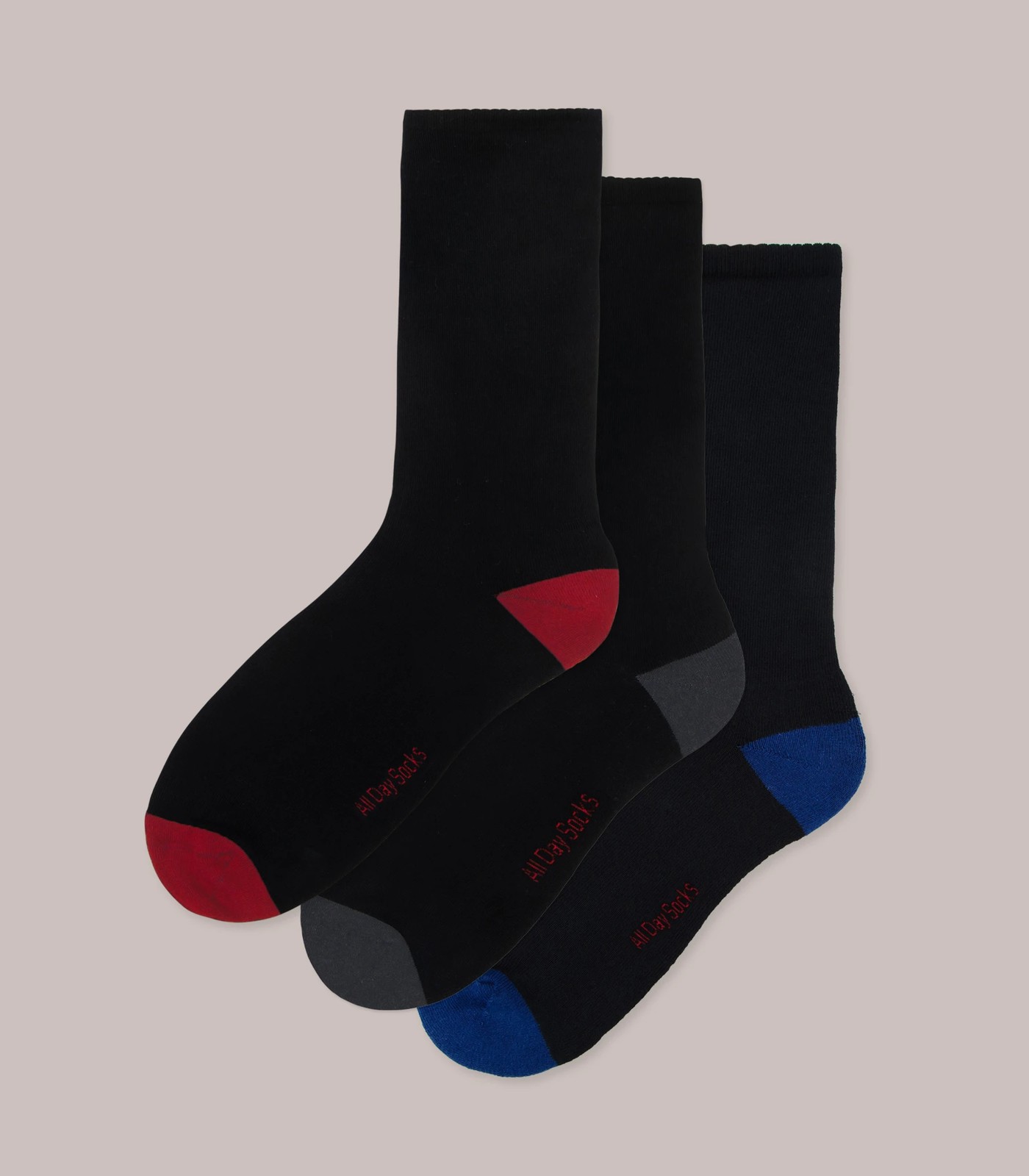 The Underworks Cushion Foot All Day Socks™ are made for wearing all day. With a 'no elastic comfort top' designed to stay up and kind to calves, fully cushioned sole and a cotton rich fabric, they combine comfort, support and reliability in a stylish way to pamper your feet. A coloured heel and toe and size on the sole makes them easy to pair and easy to wear!