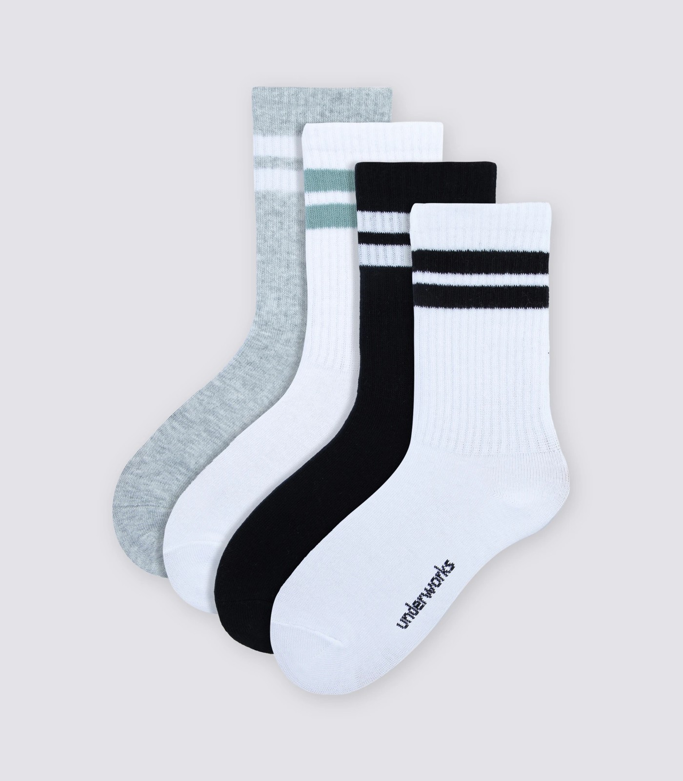 Wear. Play. Wash. Repeat. Underworks Kids striped rib crew socks are a great light weight sock that can be comfortably worn with any shoe type and provide long lasting comfort all day.