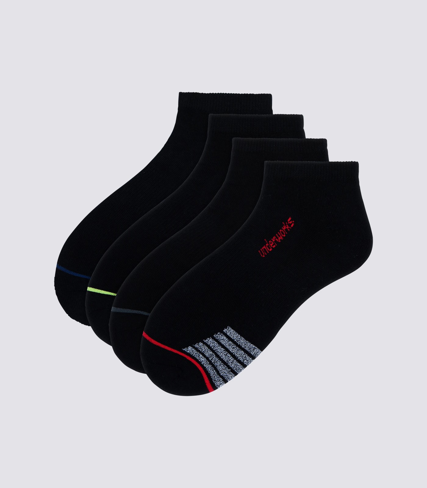Underworks Mens 4 Pack Sport Low Cut Sock - Black
