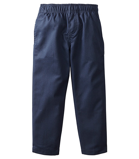 Get them ready for school in this classic pair of baggy drill school pants featuring 3-needle stitching, an elastic waistband with and adjustable internal drawcord, 2 front pockets and one back patch pocket.