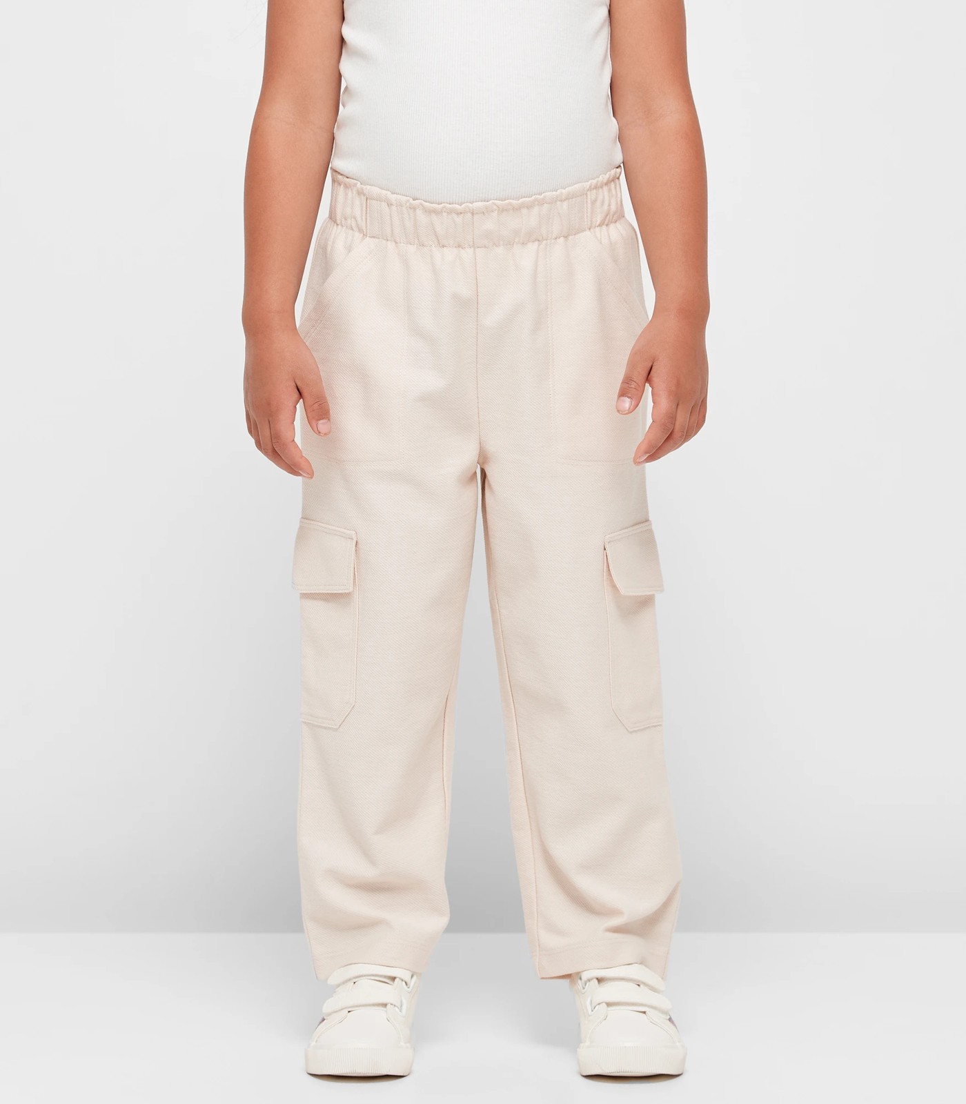 Introducing our Utility Cargo Pull On Pants, the perfect choice for girls who value style and durability. Made from a high-quality blend of cotton, these pants are not only soft and comfortable but also built to last. Designed with a regular pull on fit and a gathered elastic waistband, they are easy to wear and provide a snug yet flexible fit. The side pockets and cargo thigh pockets add a functional touch, allowing your little one to keep her essentials close at hand. With a single back pocket for extra storage, these pants are both practical and stylish. Upgrade your girl's wardrobe with our Utility Cargo Pull On Pants now!