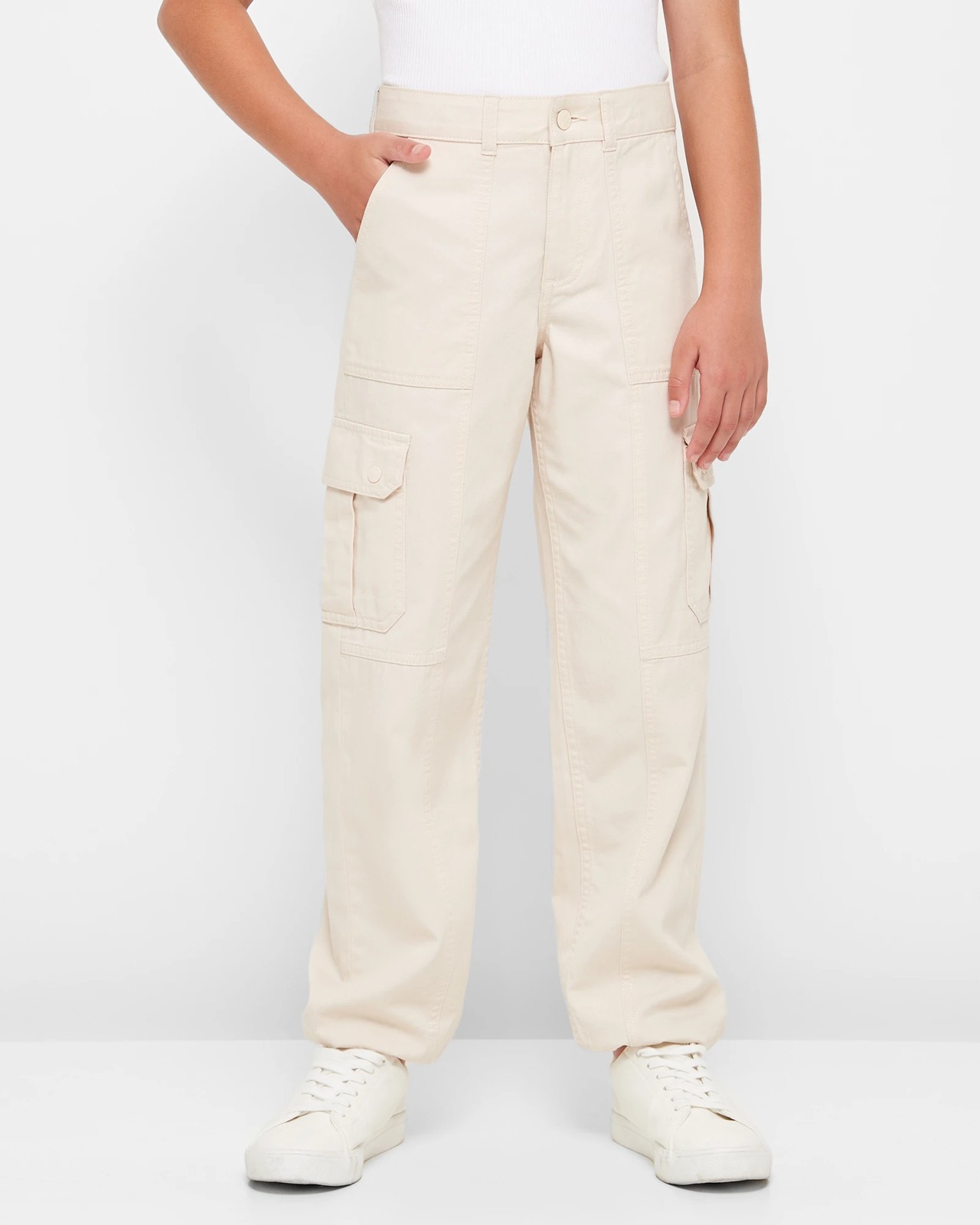 The Utility Pant is a must-have for girls who value comfort and style. Made from high-quality cotton, these pants offer a regular fit that is perfect for everyday wear. With a button and zip fly front and belt loops, they are easy to put on and adjust to the desired fit. The deep side pockets provide ample space for essentials, while the cargo thigh pockets with press studs add a touch of utility. The elastic cuffs ensure a secure fit and prevent the pants from riding up. Complete with back pockets, these pants are functional and fashionable. Upgrade her wardrobe with the Utility Pant today!