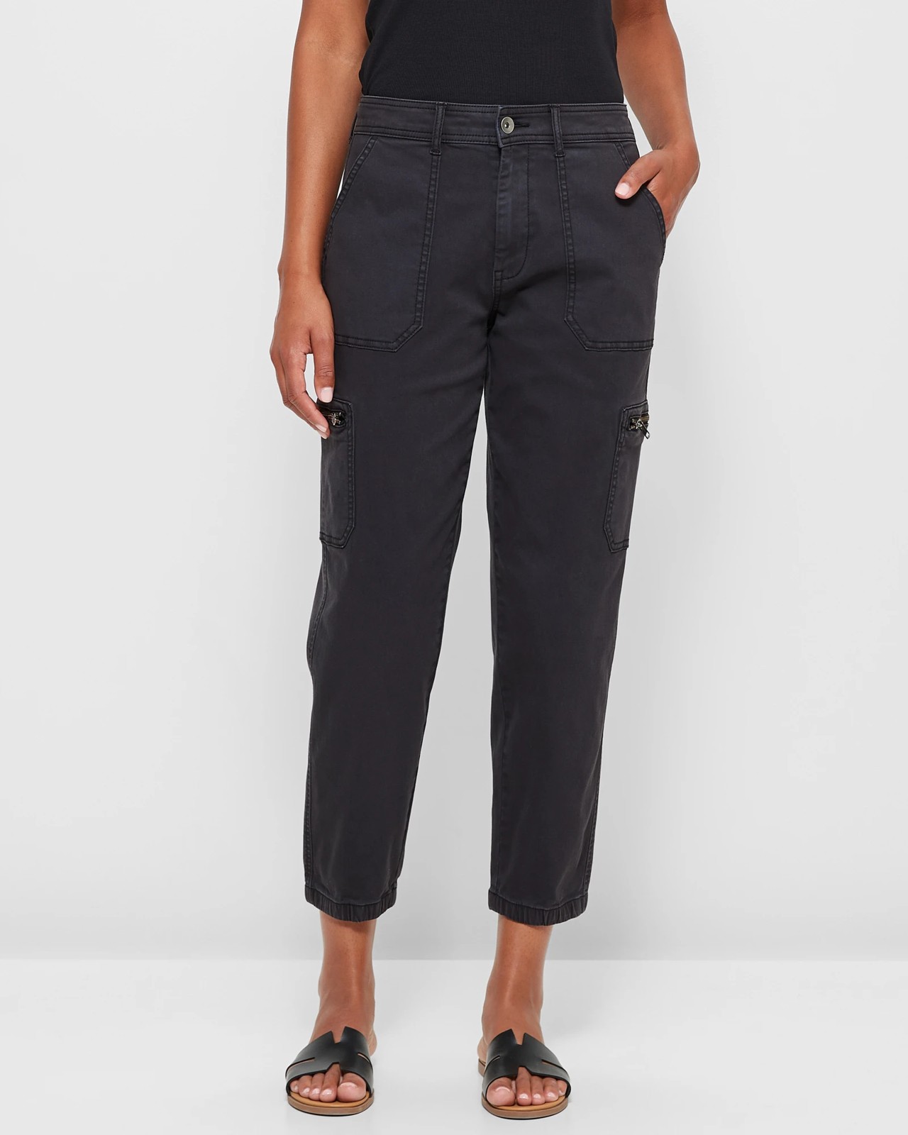 Introducing our Utility Stretch Twill Pants for women. These pants are crafted from a cotton rich fabric that offers both breathability and durability. With added stretch, they provide maximum comfort for everyday wear. The regular fit and mid-rise waist ensure a flattering silhouette, while the structured waistband with belt loops adds a touch of sophistication. Designed with functionality in mind, these pants feature exposed front pockets and side thigh utility pockets with zip closure. The straight cut legs and ankle length create a versatile look that can be dressed up or down. Complete with straight hemline and back open top spade pockets, these pants are a must-have addition to your wardrobe. Take action and elevate your style with our Utility Stretch Twill Pants!