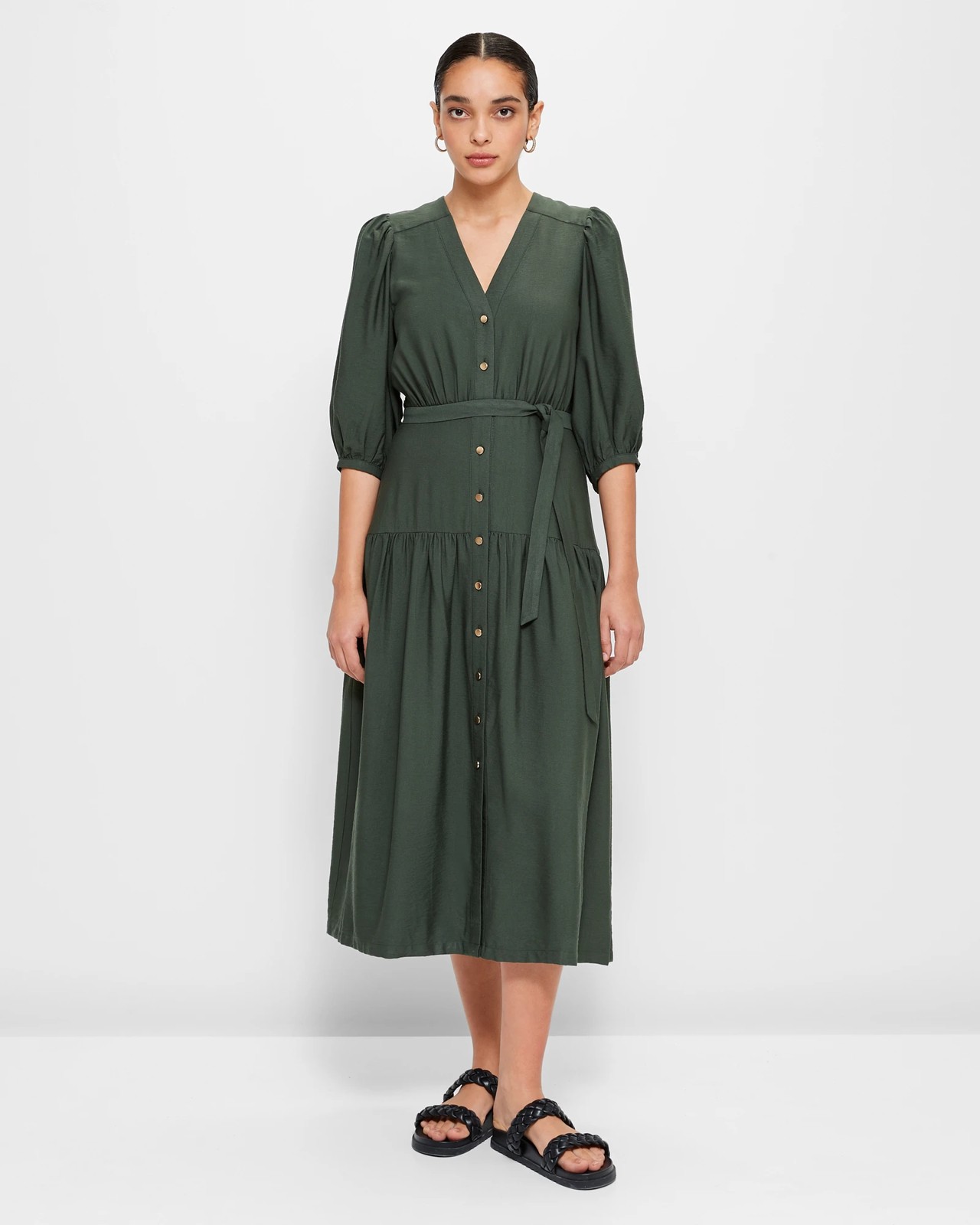 V-Neck Button Through Shirt Dress - Preview 1 of 5