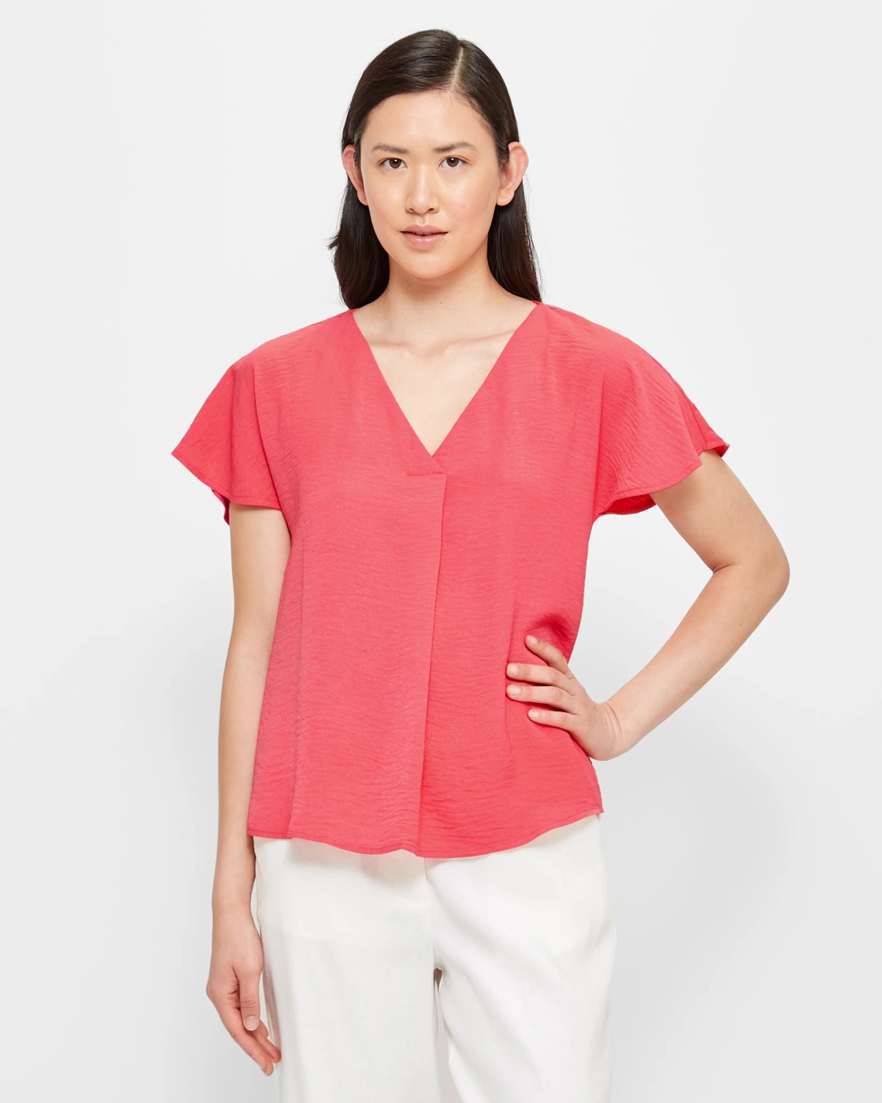 A great top for the office or a night out, the Preview notch neck blouse features a v-neckline, a short flutter sleeve design and a notch centre pleat for a classy look.