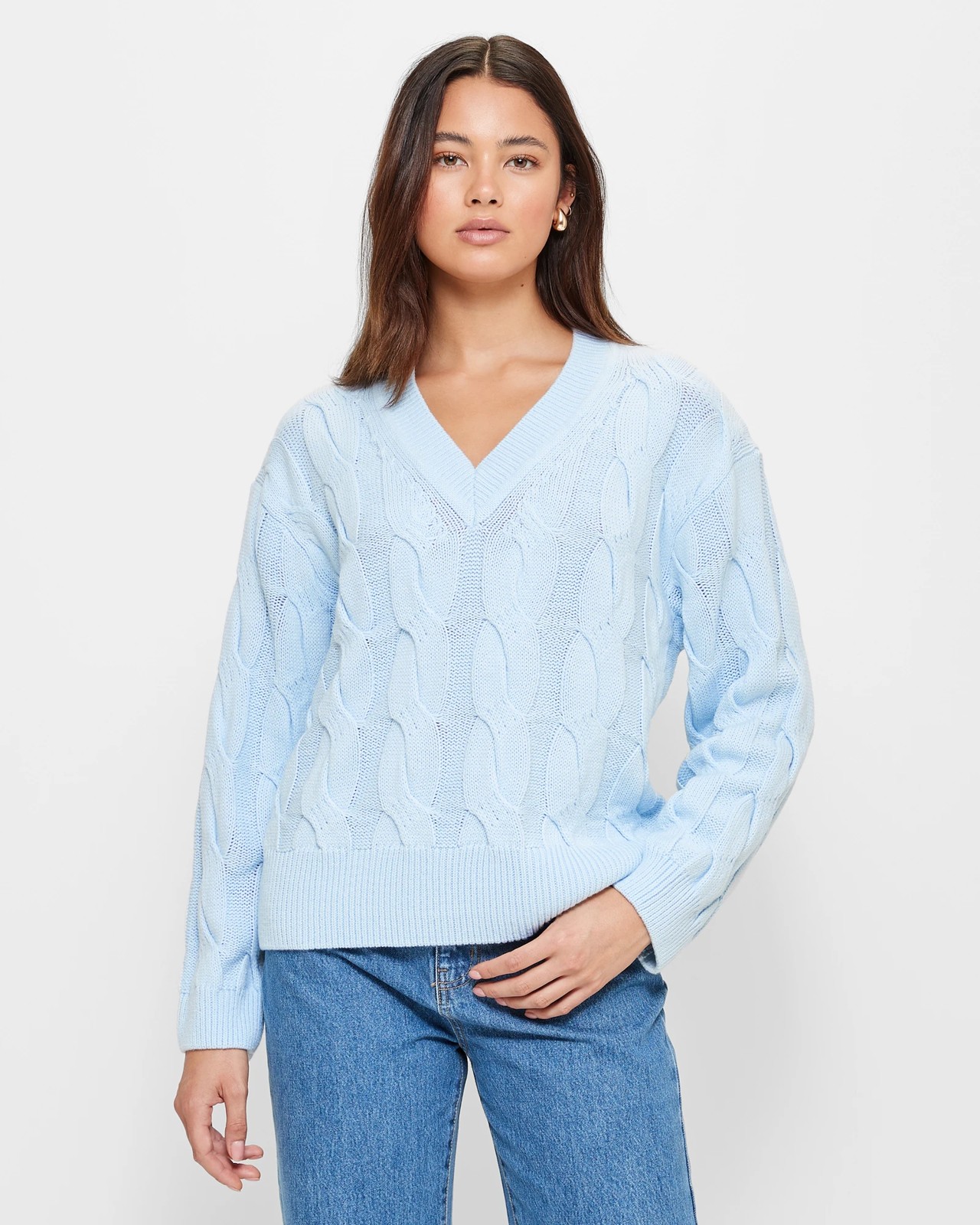 Indulge in pure comfort and style with the V-Neck Oversized Cable Knit Jumper by Lily Loves. Crafted from a soft acrylic blend, the jumper features an intricate cable knit design that exudes effortless charm. Its oversized fit offers a relaxed silhouette while the ribbed v-neckline and cuffs add a touch of sophistication. Whether paired with jeans or a skirt, the jumper ensures a timeless and cosy look. Elevate your wardrobe with the perfect blend of elegance and snugness.